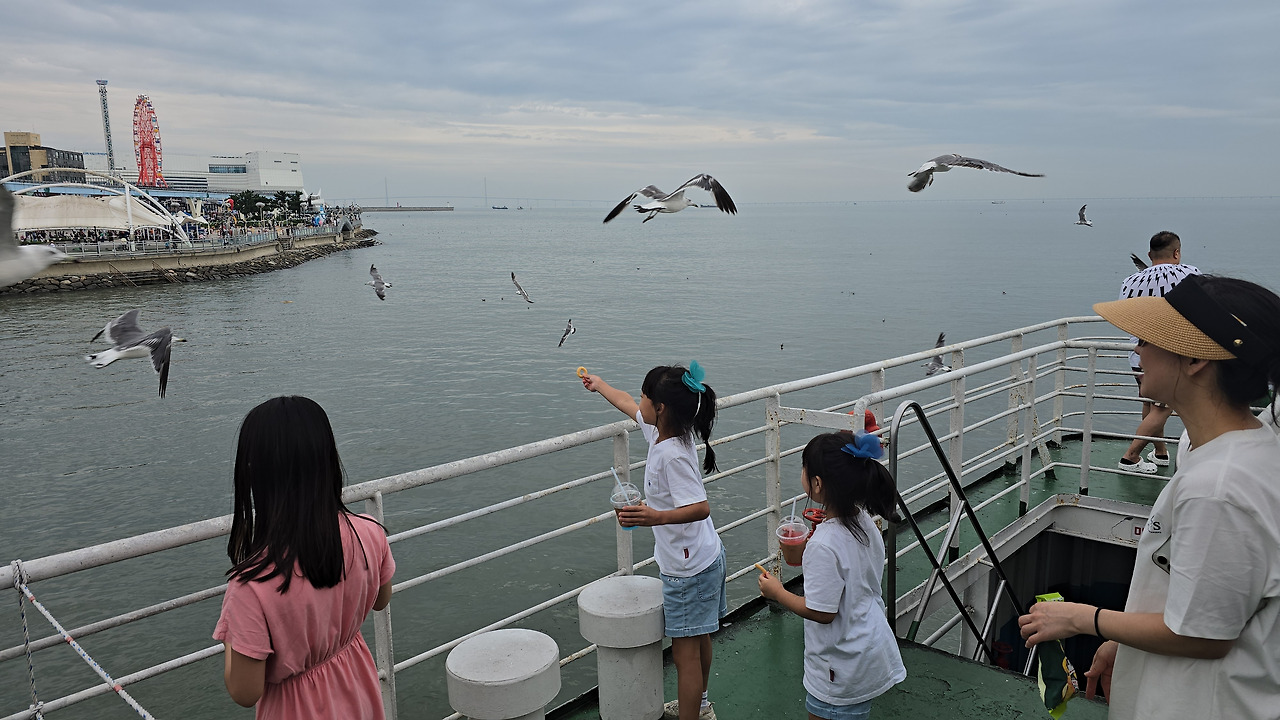 월미도 선착장에서 배에 차를 싣고 갑판으로 올라오면 가장 먼저 반기는 것은 수많은 갈매기 떼입니다. 영종도행 배를 타면 색다른 경험을 할 수 있는데, 바로 광고를 통해서 한번쯤은 본적이 있는 갈매기에게 새우 과자를 주는 것입니다. 배에서는 이를 위해 아예 갈매기들을 과자를 팔고 있습니다. 갈매기들을 사람들이 손에 든 과자 봉지를 먼저 알아보고 그 주위를 맴돌기 시작합니다. 사람들이 손으로 과자를 집어 팔을 쭉 뻗으면 갈매기들은 날카로운 눈썰미로 과자만 재빠르게 낚아채 갑니다. 서해 특유의 비릿한 바다향과 갈매기의 시끄러운 울음소리, 그리고 과자를 낚아채는 갈매기가 신기한 어린 아이들의 웃음소리가 뒤섞이며 비로소 ‘섬으로 간다’는 실감이 납니다.