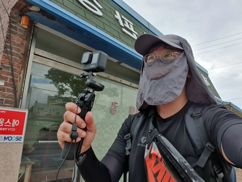 그렇게 나는 한 손에는 고프로를 들고 머리에는 마치 양봉업자처럼 회색 마스크 선캡을 쓰고 2021년 7월 16일, 37도 폭염을 뚫고 700km의 대장정의 길을 나섰다.