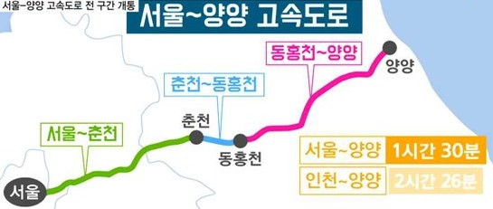 춘천을 서울과 바다로 연결해 주는 서울-양양 고속도로