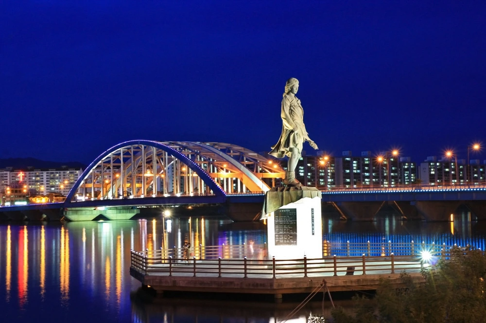 춘천의 지역 상징 마스코트는 소양강 처녀입니다. 공지천 공원에서 출발하여 소양강과 합류해서 서울로 흐르는 북한강을 왼편으로 끼고 상류 쪽으로 30분 정도 걸어 올라가다 보면 소양강 처녀상이 나옵니다. 처녀상의 크기는 5미터 정도로 생각보다 꽤나 큽니다. 덴마크 코펜하겐의 상징 인어상이나 벨기에 브뤼셀의 오줌싸개 동상에 비해서는 크기나 디테일면에서 전혀 뒤질 게 없습니다. 오히려 인어상과 오줌싸개 동상에 비해서 소양강 처녀상이 스토리텔링과 상징성 등 여러모로 압도합니다. 저는 춘천의 소양강 처녀상의 재조명이 시급하다고 봅니다! 소양강 처녀 상 바로 앞에는 동명의 노래 '소양강 처녀' 가사비가 있습니다. 소양강 처녀는 남행열차와 더불어서 대한민국에서 정말 오랫동안 사랑받고 있는 노래죠.