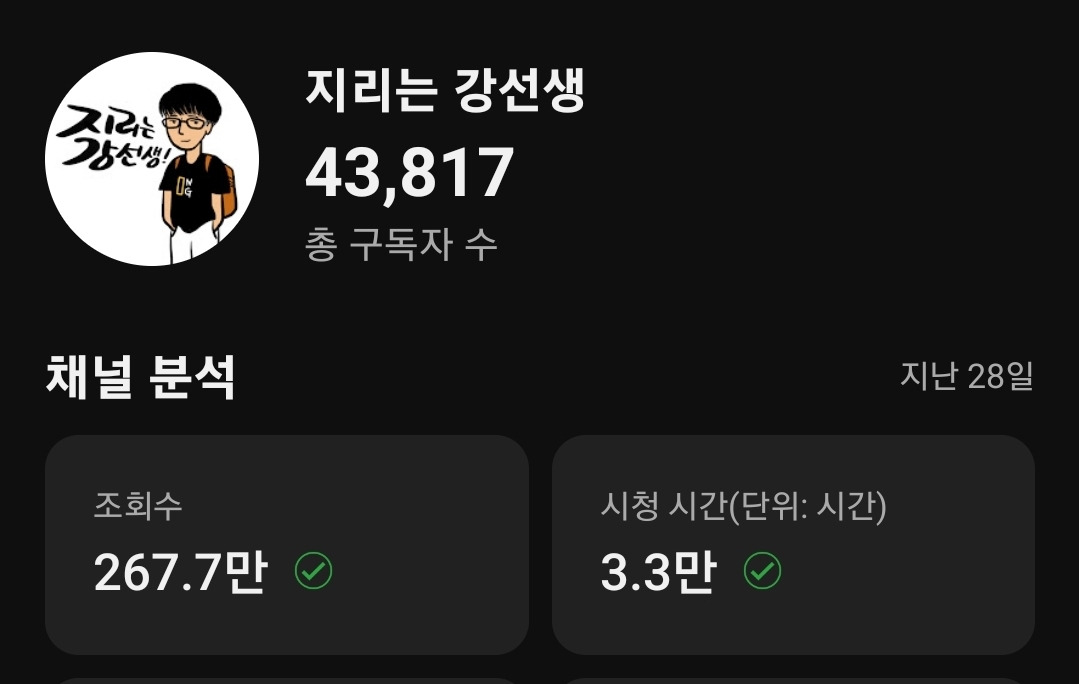 그러다 보니 영상의 조회수는 처참했습니다. 당연한 얘기죠. 구독자가 애초에 10명 단위였으니까요. 제가 맡은 한국지리, 여행지리 수업 영상을 찍어서 유튜브에 업로드하고 학생들에게 보라고는 했지만, 이건 참... 만든 제가 봐도 보기 민망한 영상이었습니다. 재미도 없고, 그렇다고 수업이 평소처럼 잘 되지도 않았거든요. 그리고 영상 길이도 40분이 넘을 정도로 길고, 음성이 울려서 잘 안 들리는 데다 자막도 없어서 여러모로 참으로 처참한 영상이었습니다. 그렇게 유튜브를 시작했지만 2021년 여름까지 지리는 강선생은 수업 영상을 간간이 올리는 그저 그런 유튜브 채널이었습니다.