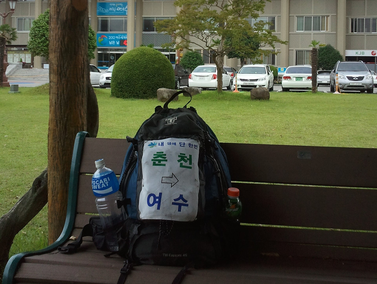 한여름에 무거운 배낭을 메고 하루 종일 걷는 것은 누구에게는 정말 고되고 의미 없는 일이겠지만, 저는 걷는 모든 순간순간이 행복하고 의미가 가득했어요. 특히 춘천에서 여수까지 걸어서 여수 밤바다 노래를 듣는다는 너무도 확고한 목표가 있고, 하루를 걸으면 그 하루만큼 목표가 달성된다는 가시적인 성과가 있으니까, 다리가 정말 아프고 물집이 잡혀서 터지는 고통이 있더라도 도보여행의 순간들은 정말 행복했습니다. 21일 만에 소박한 여수 구항이 보이는 돌산에 올랐고, 거기서 처음으로 버스커버스커의 여수 밤바다 노래를 들었습니다. 행복한 눈물이 흘렀고, 지금 느끼는 모든 감정들이 감사하게 느껴졌습니다.