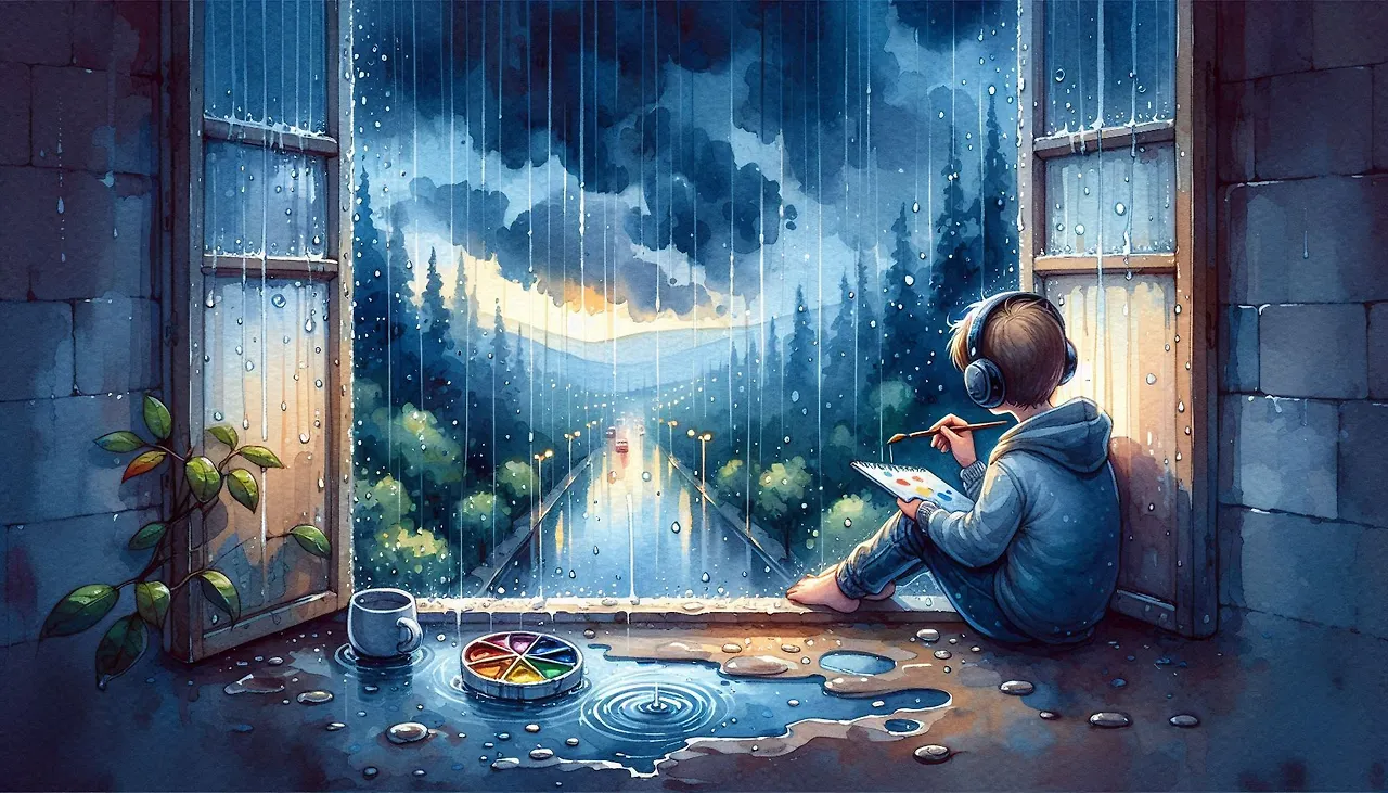 빗방울이 창문을 두드리는 소리는 마치 고요한 음악 같다. 세상은 그 소리에 귀를 기울이며 잠시 멈춘다. 빗줄기가 땅에 닿을 때마다 생기는 작은 웅덩이들은 순간의 예술 작품이다. 비오는 날의 수채화는 그렇게 완성된다.