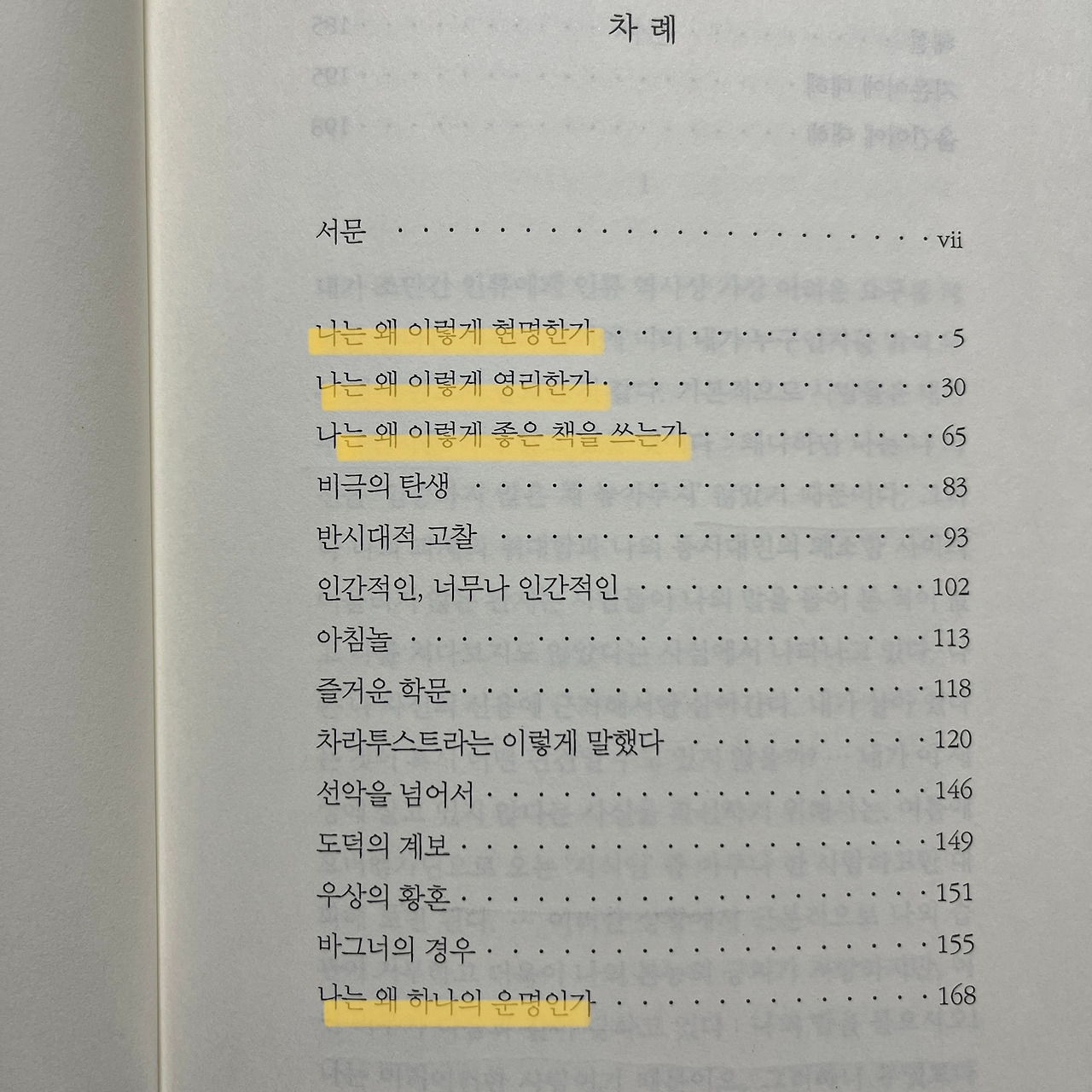 니체는 자서전에 해당하는 책의 목차를 왜 이렇게 잡았을까? 그가 잘난 체의 끝판왕이라서 그런 것은 아닐 것이다. 이 목차를 보면 <변론>에 나오는 소크라테스가 생각난다. 입만 열면 다른 사람을 불편하게 만드는 소크라테스의 모습과 이 목차가 오버랩된다.