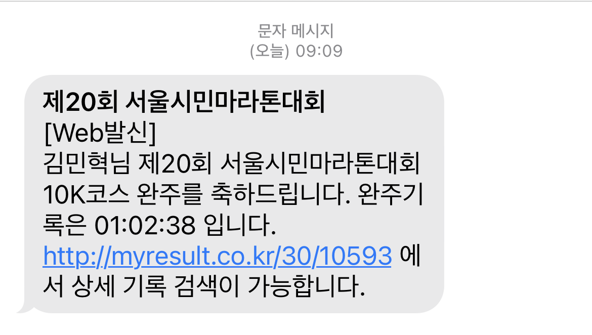 제20회 서울시민 마라톤대회 10km 완주