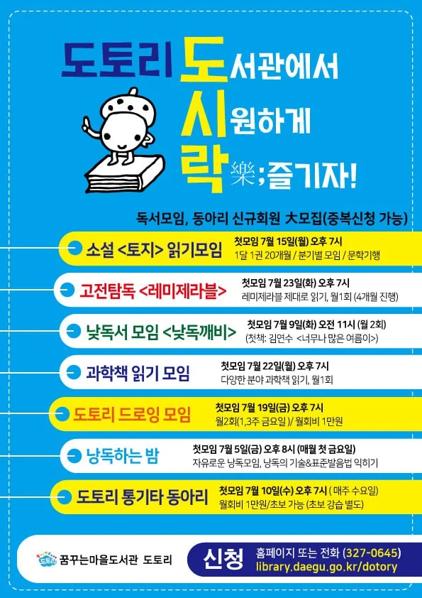도서관 길 위의 인문학 프로그램이 모두 탈락되어 자체 프로그램을 만들었다. 도서관 운영위원회 회의 때 책 모임을 만들자고 하셨다. 작은 여러 개를 만든다. 내가 낼 수 있는 안건은 뻔하다. 읽고 있는 책, 읽어야 하는 책 끼워넣기. 그러니까…‘토지 읽기’. 한 달에 한 권 읽고 만나면 스무 달이다. 그러니까 2년 프로젝트로 해보자고 했다. 중간중간 나들이도 가면서. 나머지 하나는 ‘레미제라블 읽기 모임’이다. 단기 모임으로 읽고 싶은 책 생길 때마다 게릴라형식으로 사람을 모으는 소속감이 덜하다. <레미제라블>이 5권이고 7월에 첫 모임을 갖는다. 첫 모임은 간단히 모임의 방향성에 대해 이야기하고 헤어지면 된다. 그러니까 8월부터 12월까지만 모이면 되겠지. 그렇다, 내가 진행한다. 안건을 2개나 냈으니 하나는 맡아야지. 관장님은 ‘토지 읽기 모임’을 진행해 달라고 했지만 프로젝트로 끌어가는 모임을 진행하고 싶어 거절했다. 막상 모임 하나를 맡게 되니 무슨 말을 해야 할지 걱정부터 밀려온다. 뻔한 질문 하기 싫은데.