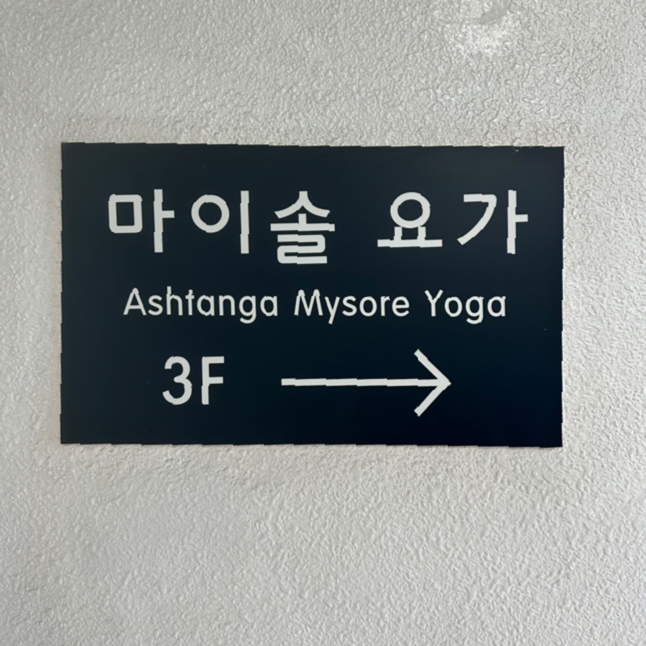 마이솔 수련은 처음이라 일반 요가원 수련 방법인 줄 알았다. 한쪽 방향으로 매트가 놓여 있고 선생님이 앞에서 동작을 가르쳐주실 줄 알고, 9시 반 수련에 맞춰 갔다. 데스크에서 선생님께서 잠시 앉아 보라고 했다. 여기 오게 된 동기나 불편한 곳은 없는지 요가 경험은 있는지 물어보셨다. 수업 시간이 다 돼서 수업하는 곳으로 들어가려니 괜찮다고 했다. 그런 줄 알았다. 어이쿠! 선생님께서 수업 방법을 알려주신다. 9시 반 수업이지만 9시부터 자유롭게 와서 각자 진도에 맞게 몸을 풀고 있다가 9시 반쯤 같이 ‘옴~’을 하고 다시 수련을 이어간다고 했다.