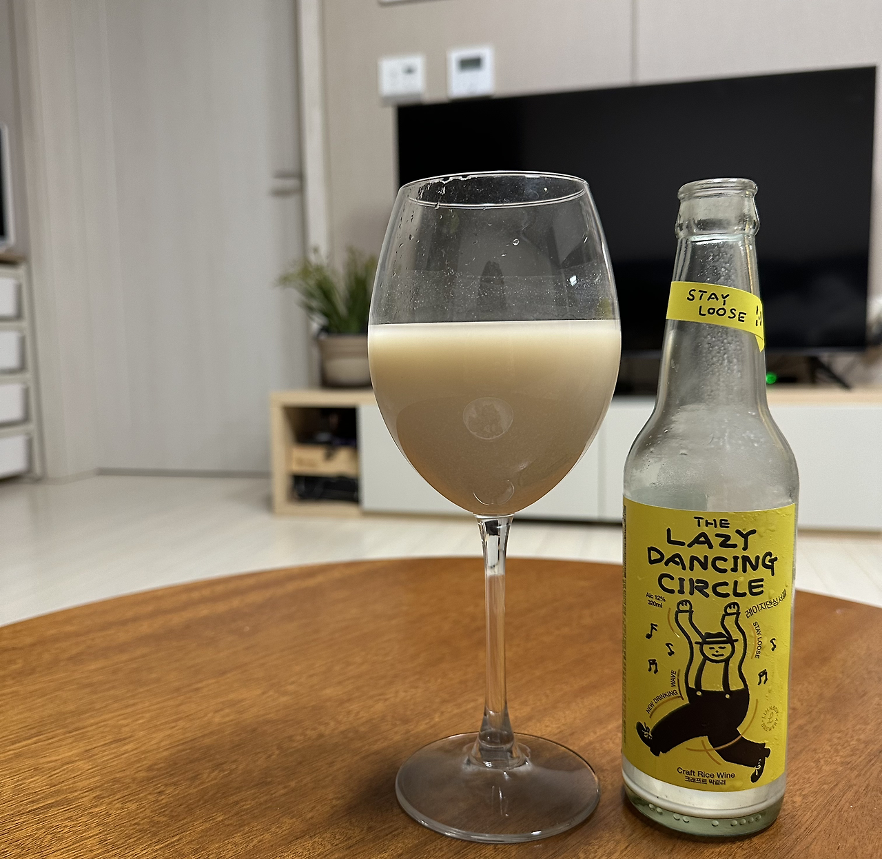 탁주는 숙성의 시간을 거친다. 마실 때도 숙성하듯 천천히 마셔야 한다. 탁주의 멋이다. 느리게 음미하면서 마시는 멋. 금요일에 마신 막걸리도 그랬다. 림보이양조에서 만든 <THE LAZY DANCING CIRCLE, 레이지댄싱서클> 막걸리를 토요일에 마셨다. 제조일을 보니 1월 17일이었다. 18일에 도착했다. 무알콜 맛을 알게 해 준 책방이 아닌, 인근의 다른 책방에서 입고했다. 크라프트 막걸리라고 했다. 어랏! 이럴 때? 탁주에 스며들고 있는 이때 말이지? 책방으로 발걸음을 했다. 한 병만 사기 아쉬우니 두 병을 샀다. 375ml이다. 보통 와인이 750ml이니 딱 반이다. 용량대비 가격을 생각하면 와인보다 싸지만, 일반 막걸리에 비하면 비싼 술이다. 에탄올 함량은 12%다. 귤술보다 약하다고 만만하게 보면 안 된다. 연말에 탁주 마시고 두통에 시달린 경험이 있으니까. 맛보고 싶으니까, 목요일에 구입하고 금요일에 마셔봤다. 흔들지 않고 윗부분을 따라 마셨고, 다음은 섞어서 마셨다. 신맛이나 단맛이 강하지 않은 슴슴한 맛이라 맛있지만, 맥주처럼 꿀꺽꿀꺽 마시기에 확실히 독하다. 홀짝거린다. 취기가 오른다. 이쯤 마셔야겠다고 잔을 봤다. 1/3을 마셨다. 이 막걸리는 병따개로 되어 있어서 그런지 오래 보관이 어렵다고 했다. 어쩔 수 없이 싱크대에 버렸다.