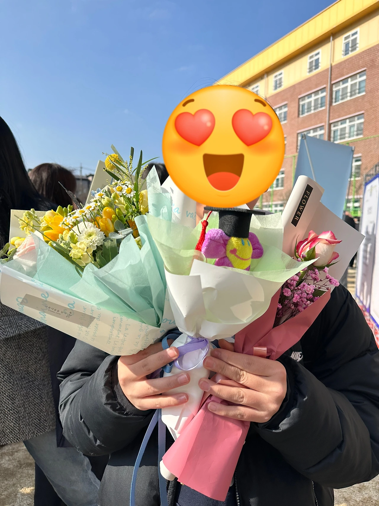 나를 꽃집으로 데리고 간 동료는 청소년을 위해 꽃다발을 준비한 모양이다. 짐작을 못했다. 무심하게 뒷좌석에 꽃다발을 주며 ‘쌤, 편지 읽어보지 마세요.’ 한다. 청소년 친구를 위해 나도 작은 꽃다발을 주문했다. 뭐, 졸업식 당일 누구를 줘야 할지 갈피 못 잡는 꽃다발이 되었지만. 졸업식 당일. 청소년은 나를 찍사로 열심히 부려먹고 친구들과 밥을 먹으러 갔다. 나는 혼자 집으로 가려다 근처에 일하는 지인에게 전화를 걸어 같이 점심을 먹었다. 얼마만의 졸업식 풍경이었는지 새삼 느꼈다. 모두 꽃다발을 들고 지나가는 친구들을 붙잡고 한 장이라도 더 사진을 찍는 모습도 보였고. 비록 점심은 같이 하지 못했어도.