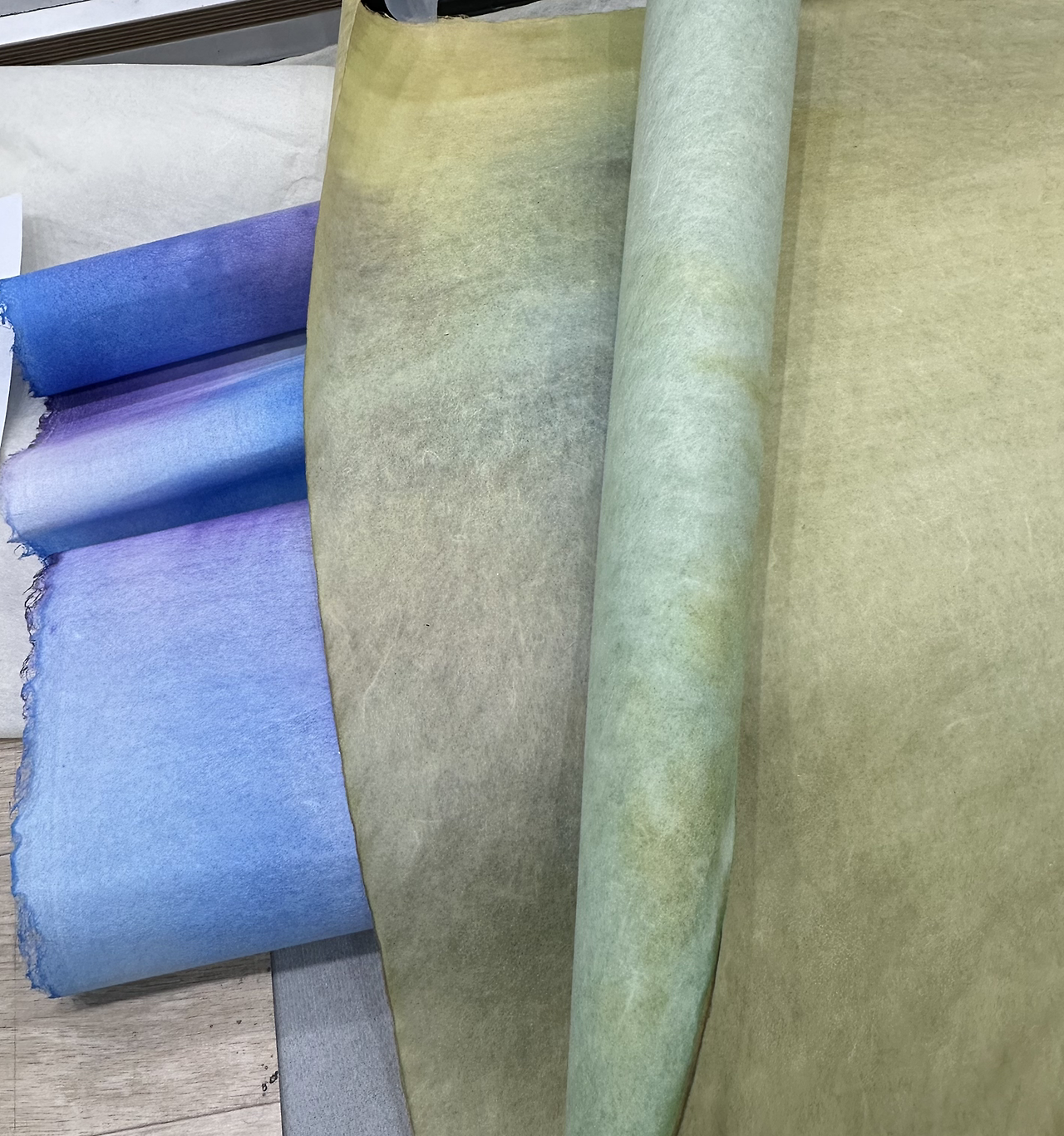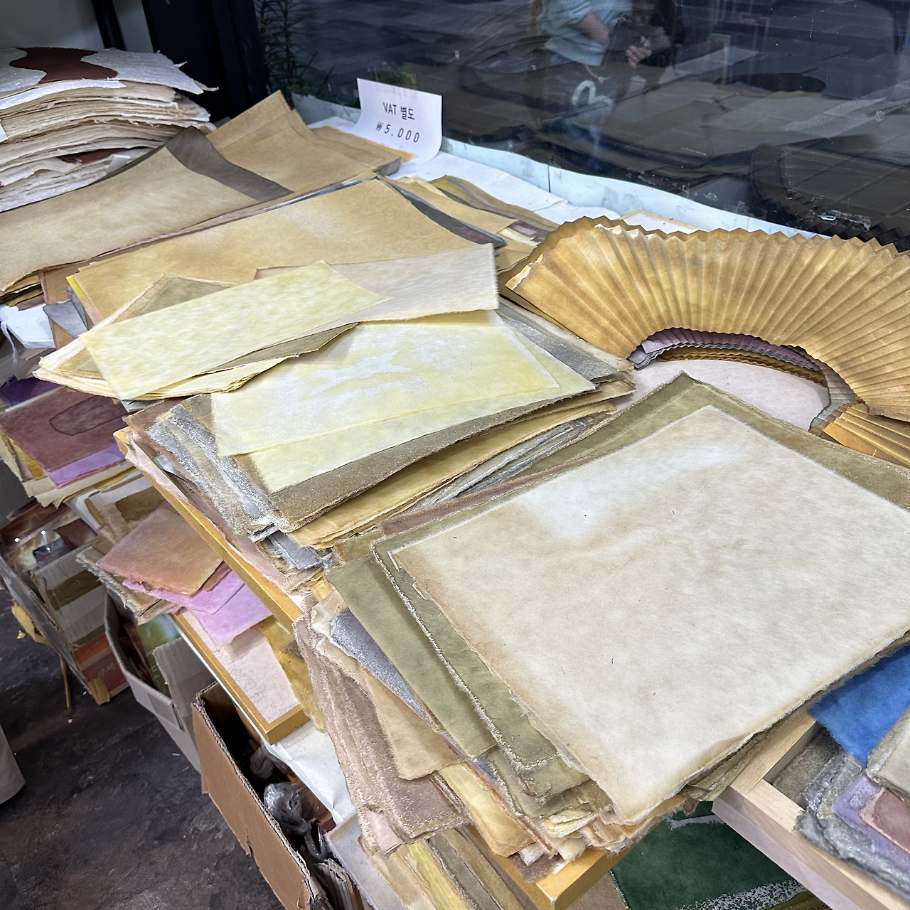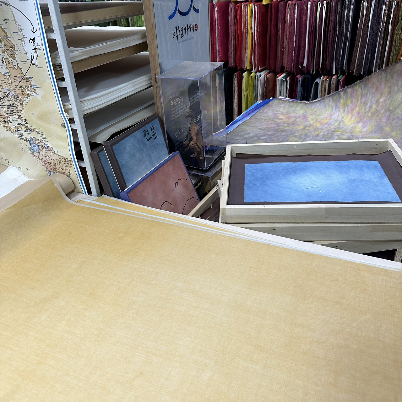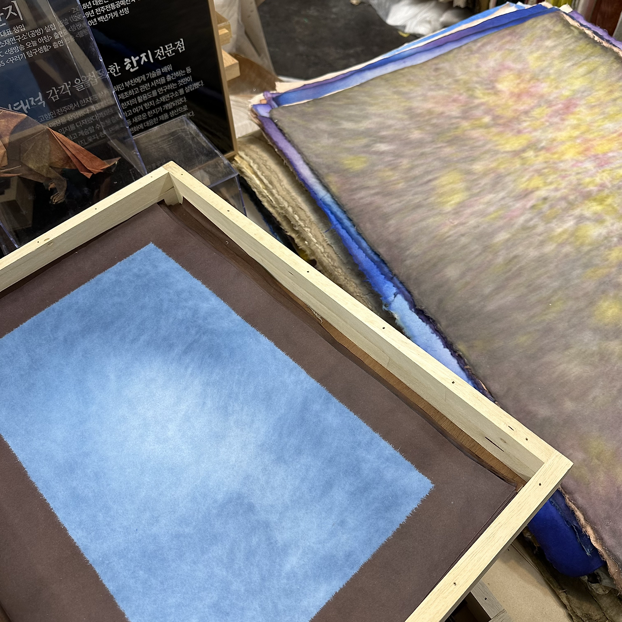 작년 가을 인사동에 선생님들과 갈 일이 있었다. 선생님이 주로 구입하는 한지 가게에 들어가서 염색 한지 구경하기로 했다. 물감을 넘어 이제 한지로 옮겨갔다. 작년 가을과 이번 겨울에 인사동 갈 때마다 ‘동양한지’에 들러 염색 한지, 금분 넣은 펄 한지, a4 사이즈부터 전지보다 큰 사이즈까지 구입했다.