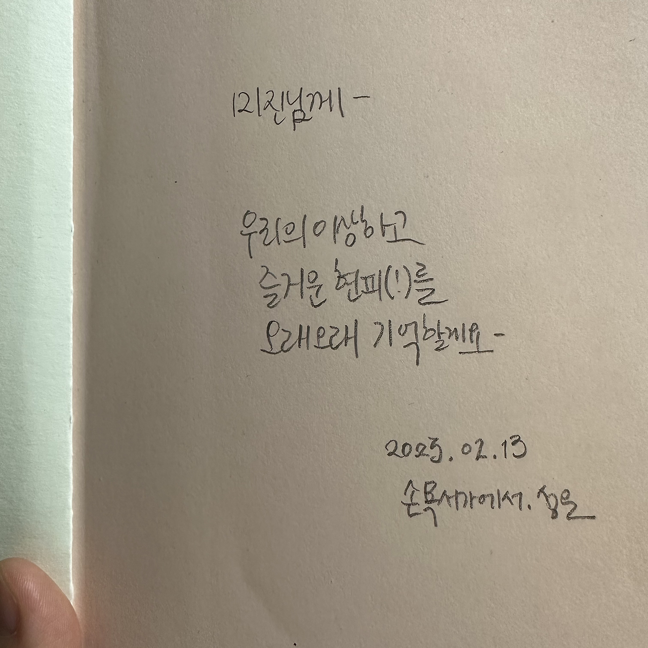 작가는 말했다. 그런 사람들 정말 많으니까 걱정하지 말라고 했다. 그냥 쓰는 거다. 쓰는 삶을 사는 것과 쓰지 않는 삶을 사는 것은 분명 큰 차이가 있다. 꼭 쓰는 삶을 살길 바란다. 쓰는 삶을 살아요, 우리 라고 했다.