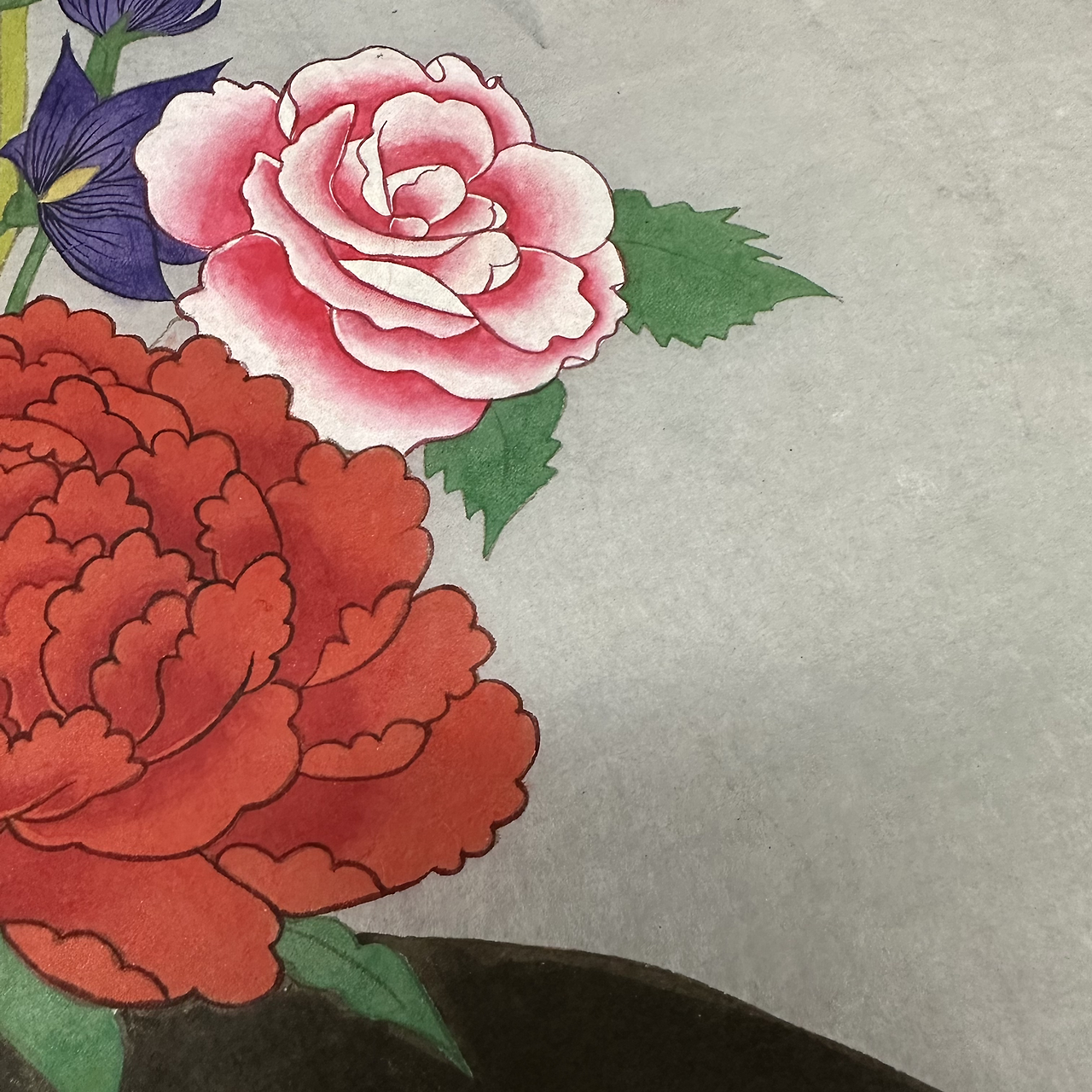 첫 번째 공모전 그림 사이즈가 작지 않았다. 전지보다 작지만 SUV 자동차 바퀴를 덮을만한 크기지만 다른 그림과 섞여 있으니 작디작아 보인다. 이번에 사이즈를 좀 키워볼까. 책바구니와 화병에서 선생님이 꽃 종류도 그렇고 색깔이 너무 가지가지라는 조언을 해주셔서 유념해야겠다고 생각했다. 조선시대가 아닌 2023년을 살고 있고 민화는 대중적인 그림이니까 그 시대가 아닌 현시대 그림을 녹이고 싶은 마음이 크다. 책장, 책꽂이도 검색했다. 매번 검색에만 의지할 수 없기도 했지만, 컬러링 북 광고도 많이 떠서 민화에 쓸 수 있는 꽃그림책을 찾기 위해 서점에도 들렀다.