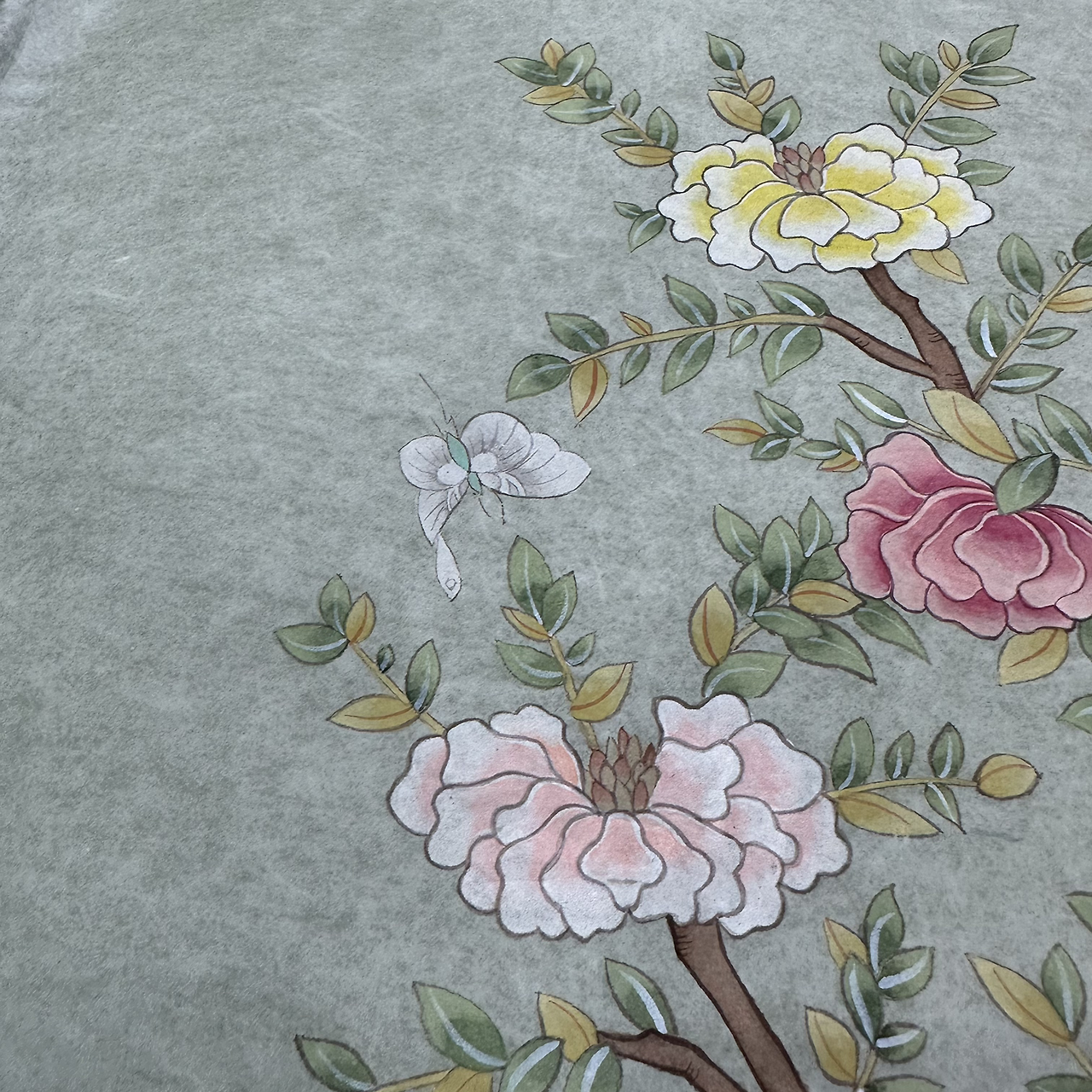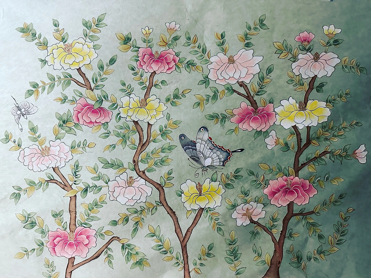 이파리가 대충 끝나고 나니 기분도 한결 편안해진다. 잎맥을 가늘게 그어야 했는데 굵게 그어진다. 붓이 나랑 안 맞아서 그런 거겠지. 다른 붓으로 바꾸면 된다. 그뿐이다. 나비를 그리고 마무리했다. 작품으로 완성하지 않고 말아서 책장에 꽂아두었다. 어느 글인지 티비에서 봤는지 그림은 액자에 씌울 때 작품으로 완성된다고 했다. 화실에서 처음 그린 모란을 말아서 고이 두었다. 이 그림, 만냥금 그린 그림도 같이 두었다. 작품으로 완성하지 않은 채 둔 그림 몇 점들이다. 아! 연꽃은 다 나눠줬다. 요가 그림도 요가원에 드렸다. 선생님들 모두 가져가실 줄 알았는데 한 분만 가져가셨고 요가원에 전시(?) 중이다. 곧 1년 되어가네.