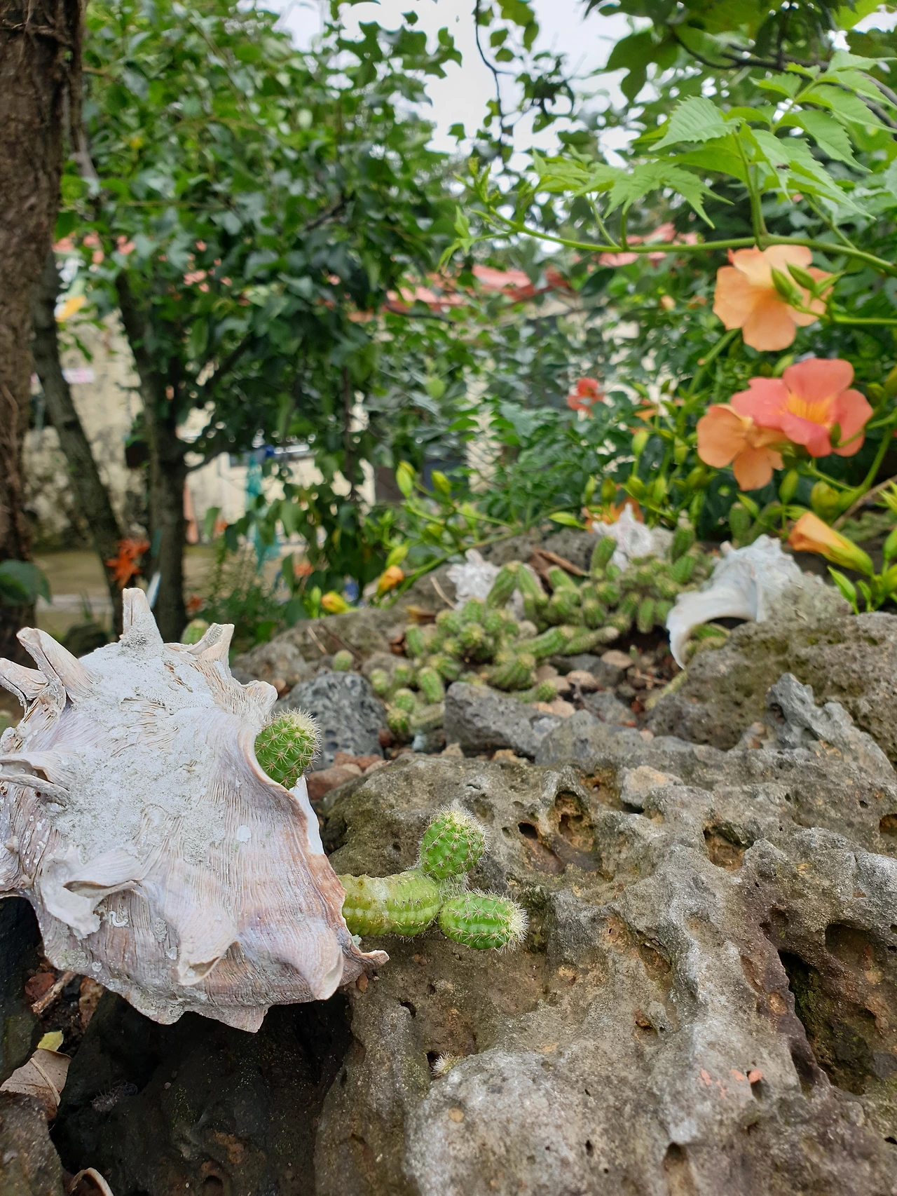 제주도 돌담에 심겨진 선인장