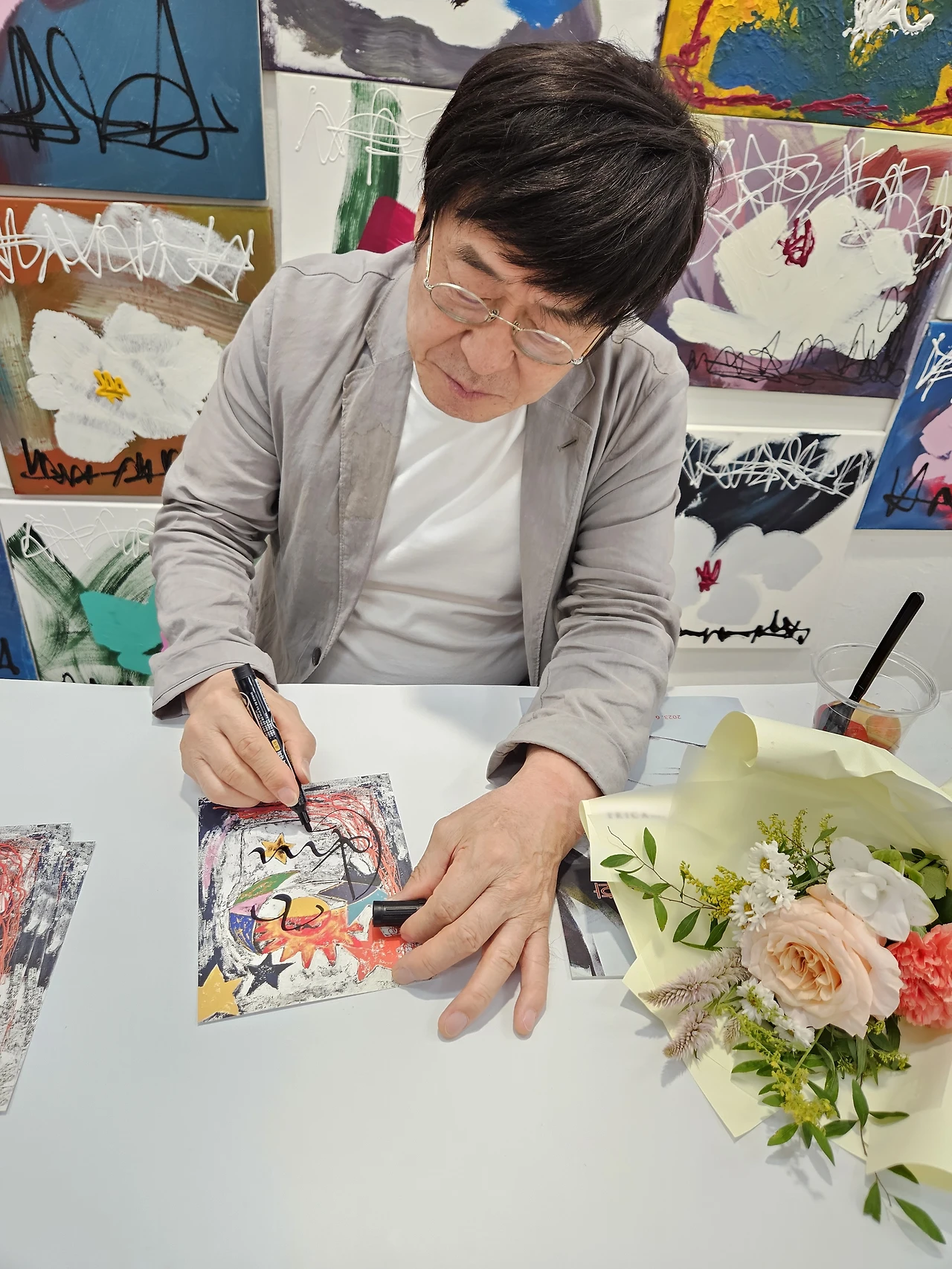 옷에 걸맞지 않은 단추 같은 느낌이다. 호기로움도 사라지고 그림에 애정도 그다지 없고. 이런 마음으로 아트페어에 참석하다니. 그래도 참석해야 한다. 왜? 연예인 특별전이 있으니까. 참여 연예인에 산울림 김창완, 2PM 황찬성, 배우 임원희, 이태성 등이 있다. 아트페어 전시장에 하루 전날 가서 그림을 걸었다. 오프닝 날, 김창완, 황찬성, 임원희, 이태성 모두 봤다. 와, 연예인들과 같은 공간에 전시를 한다니 신기하기만 하다. 연예인들과 사진 찍고 사인받고. 김창완 아저씨 부스가 가장 컸고 작품수도 500점이 넘었다. 사인회도 함께 한다는 소식에 전 날 그림 걸고 교보문고 광화문점에 가서 아저씨 책, <안녕, 나의 모든 하루>까지 구입했다. 매장에 없는 몇 년 지난 책. 딱 1권 남은 책을 구입했다. 전시 때문에 올라간 서울에서 1박 해야 했던 나는, 다음 날 아침 일찍 일어나 요가하러 망원동으로 향했다. 인사동에서 망원동으로 오가는 버스 안에서 아저씨 책을 펼쳐 읽었다. <안녕, 나의 모든 하루>는 산문집이다. 아저씨 표정만큼 따뜻한 글에 나도 나이 들고 있음을 마주했다.