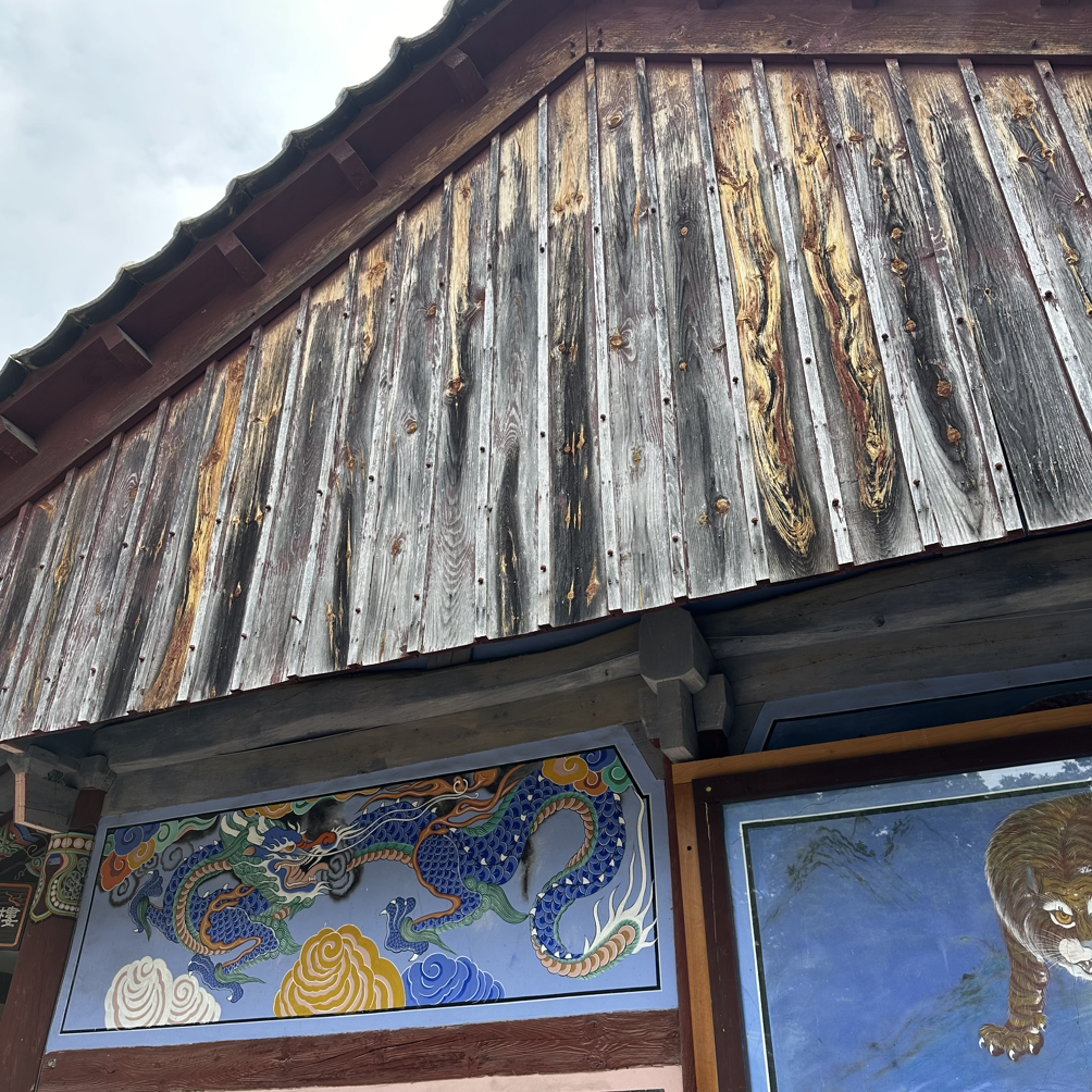 치우친 취향 사장님과 나는 카페 구석구석 둘러보고 야외에 자리 잡았다. 선생님께서 근처 ‘고운사’ 절이 있다고 알려주셨다. 고운사까지 갈 시간이 없을 것 같아, 양이 많아 보이던 마늘빵을 다 먹고 커피까지 한 방울 남김없이 말끔히 먹었는데 갑자기 시간이 남았다. 고운사로 갔다. 고운사 앞에 주차를 하고 갔더니 꽤 걸었다. 약 20분 정도? 절 전체 공간은 넓다. 그 안에서 여러 법당(?)들이 오밀조밀 모여 있어 아기자기하게 예쁘다. 청룡, 호랑이 벽화도 있다. 올해가 청룡의 해라 민화에서 청룡을 얼마나 많이 그렸는데. 미리 봤으면 모사했을까. 청룡을 찍었다. 사장님은 호랑이를 찍으신 듯하다. 저는 용의 기운을, 그대는 호랑이 기운을! (기운이 솟아나요!!) 길을 따라 들어왔더니 절 안에도 카페가 있다(찻집이라 해야 하나?). 구계밀리에서 마늘빵 맛있게 먹었지만, 다음에 같은 곳에서 요가를 한다면 요가 끝나자마자 절에 올라와서 커피든 차든 마시고 싶다. 마루에 있는 상을 사이에 두고 방석에 앉아 내리쬐는 햇살을 보며.