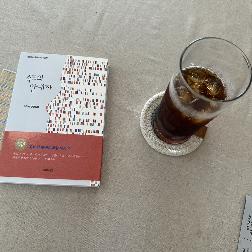 <속도의 안내자> 모임에 책을 쓴 ‘이정연 작가’를 비롯해 수림문학상과 관련 있는 여러 작가들도 있다. 그들이 나누는 이야기에 내가 끼어들만하다고 여겨지는 부분이 없어 이정연 작가가 던지는 질문이나 진행자가 던지는 질문에 스스로 답을 찾으려 노력하며 글을 읽고 있다. 지금 몇 장 남지 않아 마저 읽고 싶지만, 오늘이 가기 전에 연재하고 싶어 책 마무리는 내일 하는 것으로 남겨둔다.