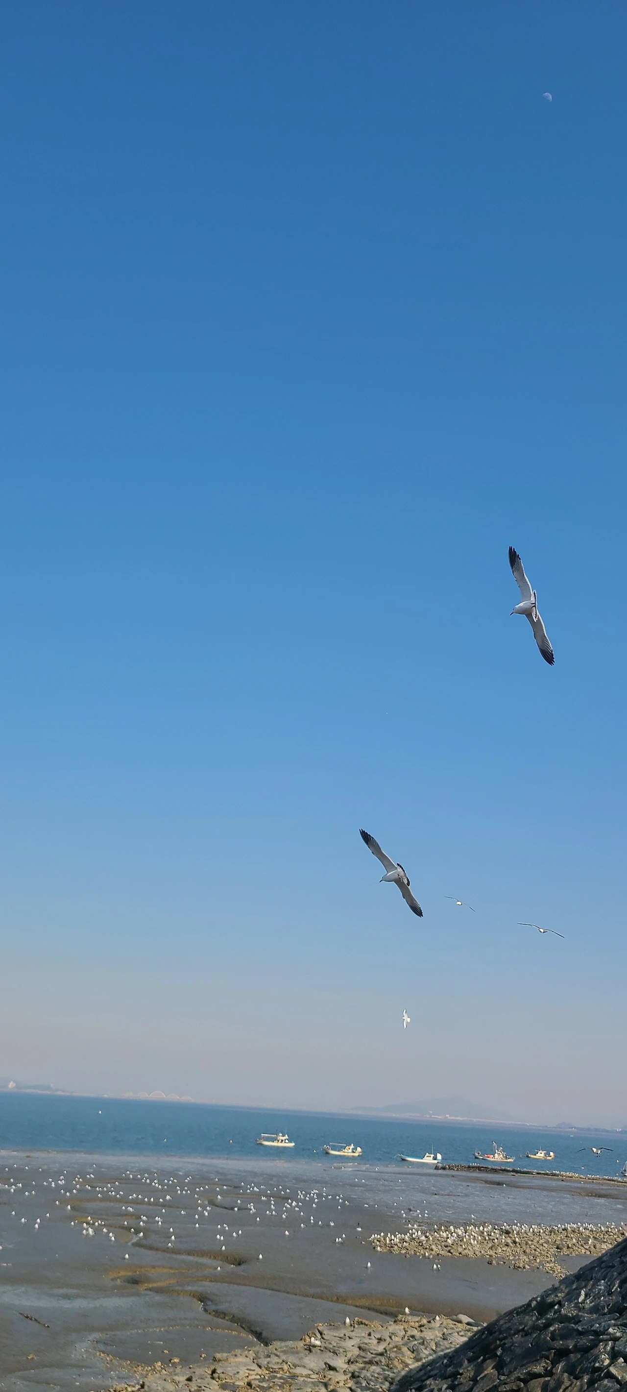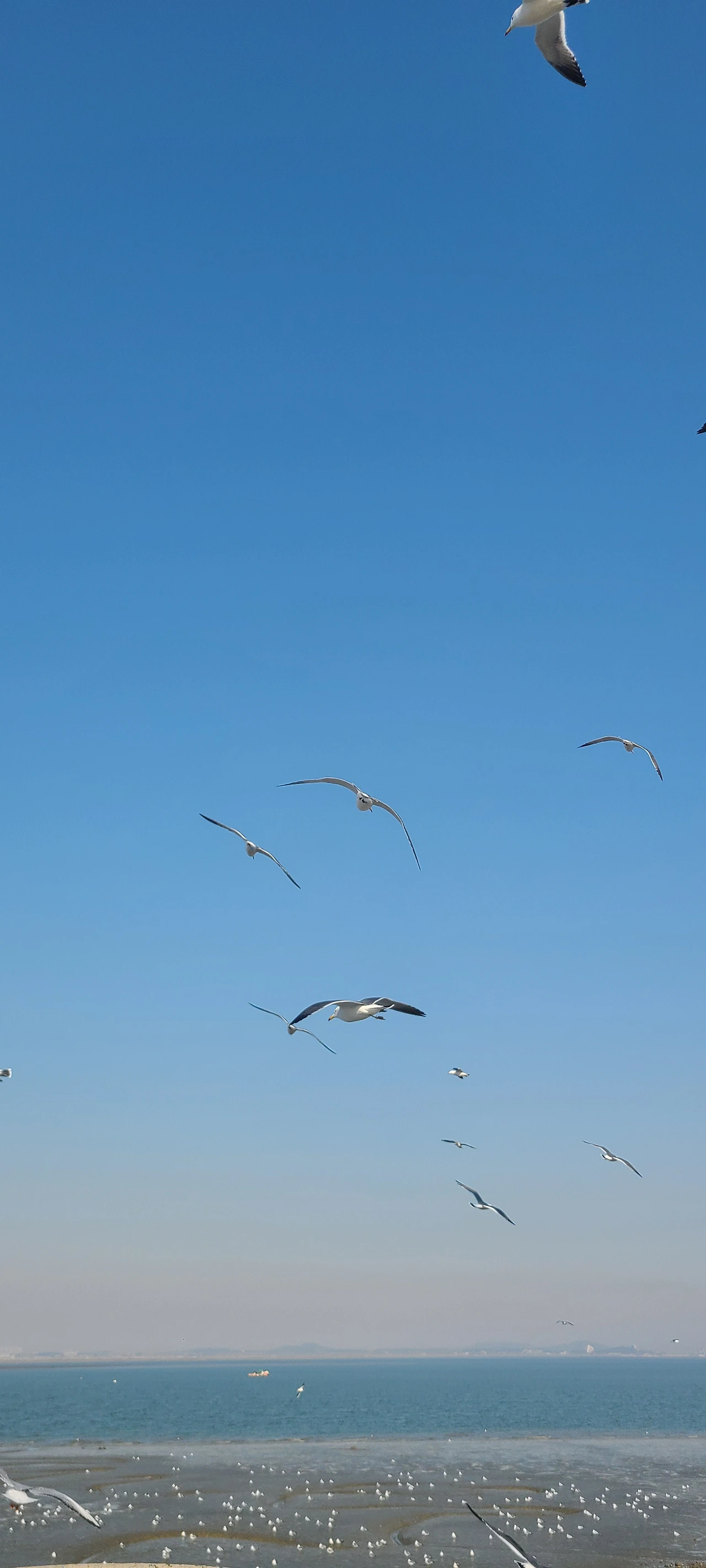 당진 삽교호 바다공원에서는 갈매기들과 같이 산책할 수 있다