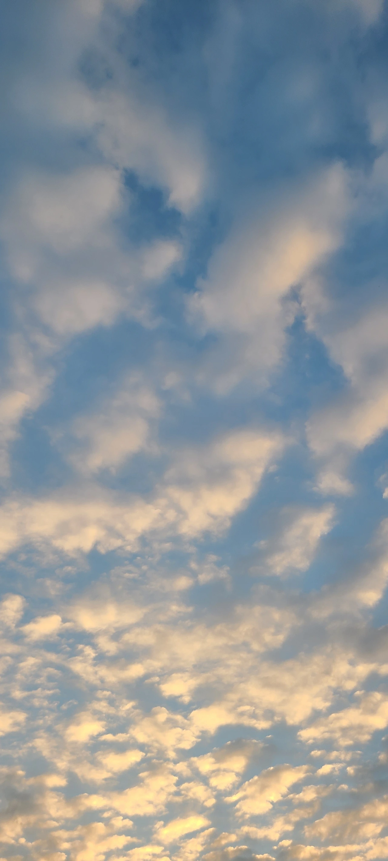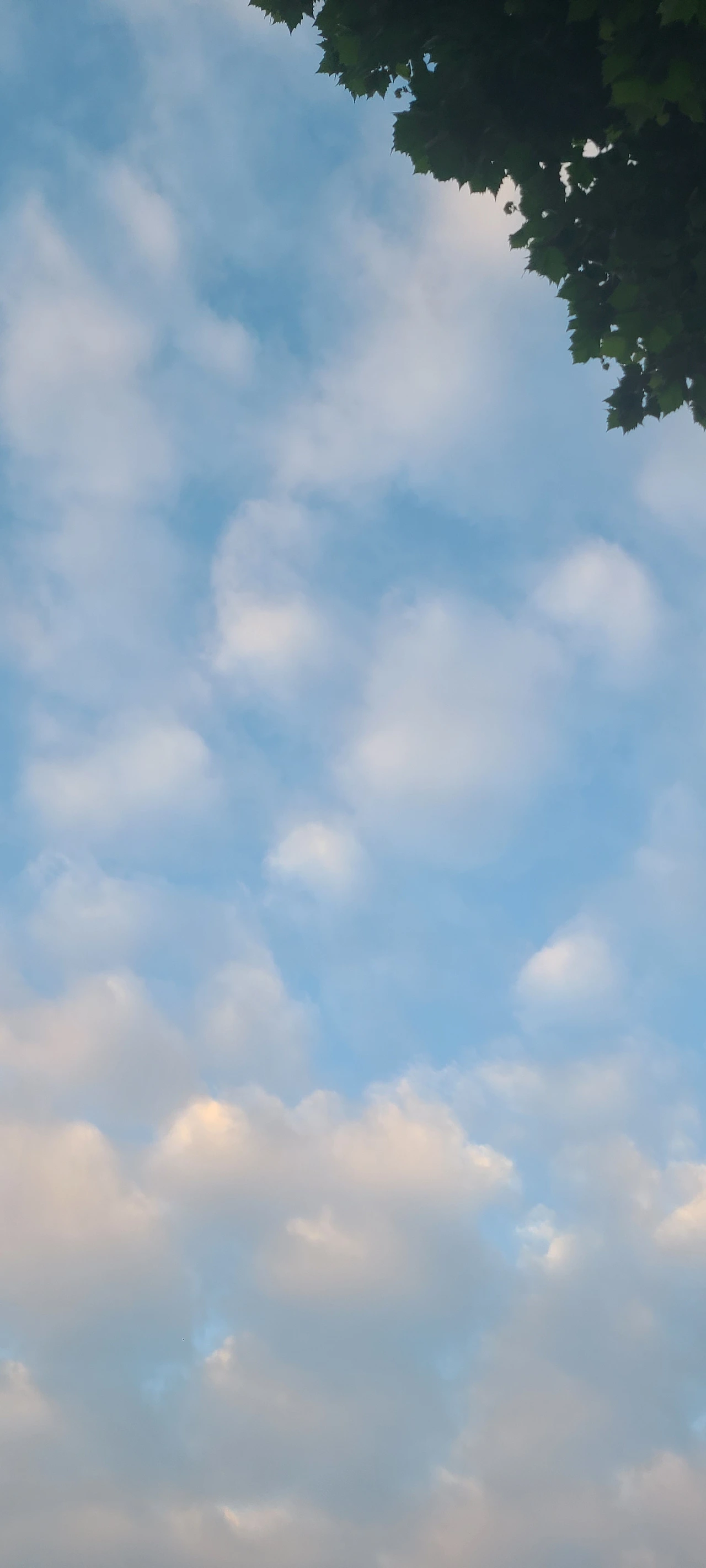 저녁이 되니 구름이 뭉쳐져서 하늘의 색이 보인다