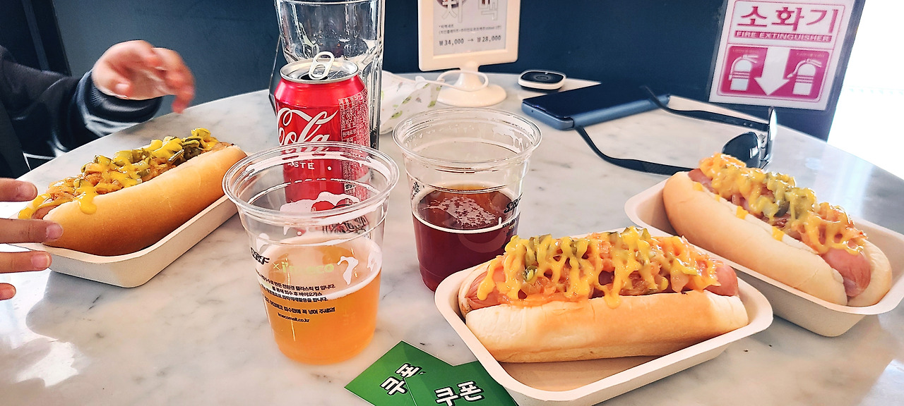 장소는 독일식 수제맥주집이다. 입장료 12,000원에 수제 맥주 한 잔과 커다란 수제 핫도그를 주었다. 한잔으로는 아쉬워서 한 잔 더 마시고는 3층에 올라가 다양한 책들을 구경했다.