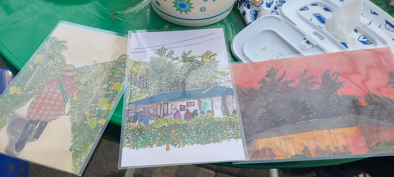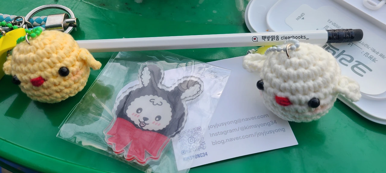 아까 책맥 페어링에서 산 책과 키링을 살펴보고 받은 엽서들을 구경하기도 했다.
