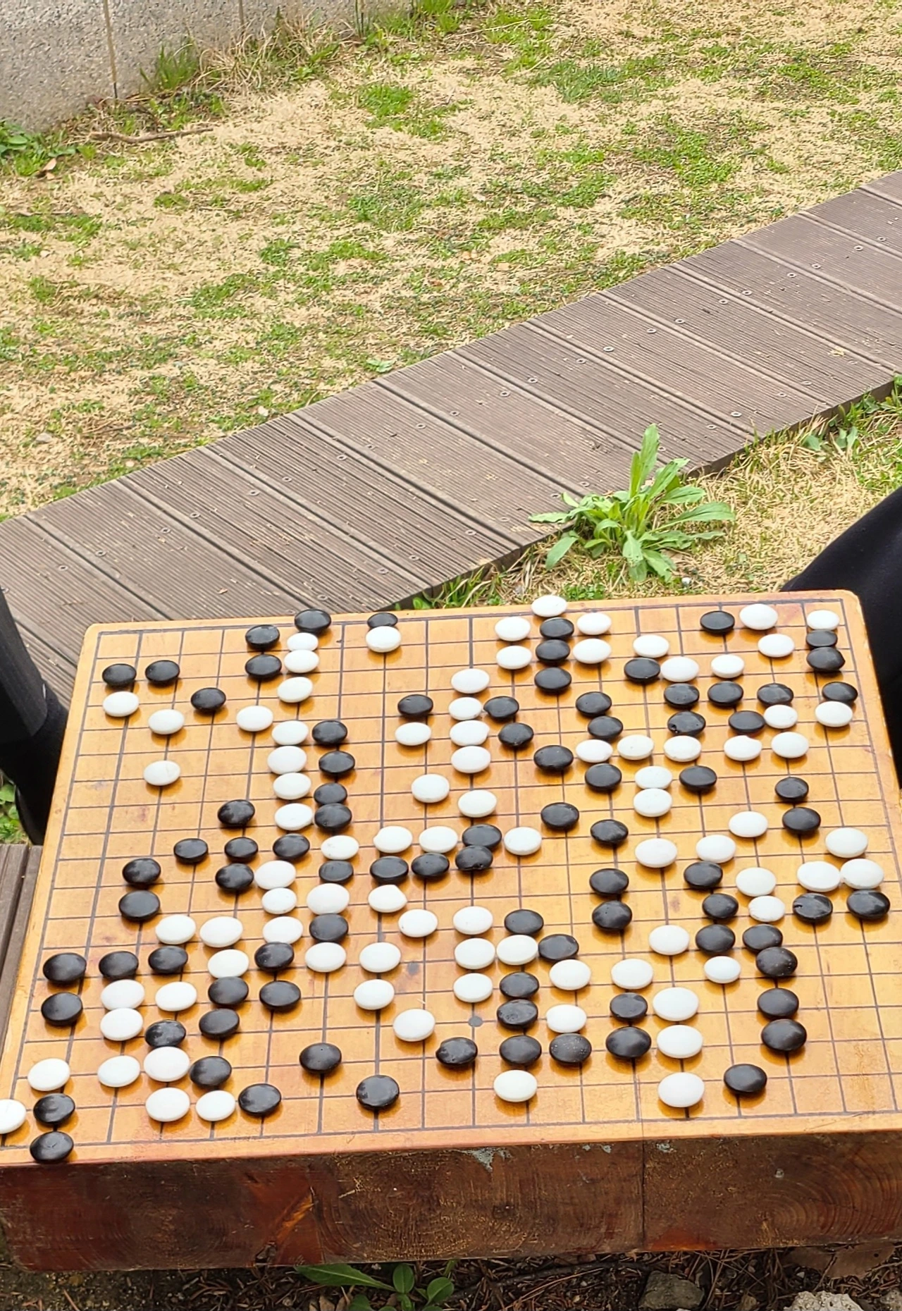 야구장 밖에서 순살치킨을 먹고 맥주를 마시며 휴대폰으로 한발 늦는 중계를 보았다. 야구에 관심이 없는 아이는 게임을 했다.