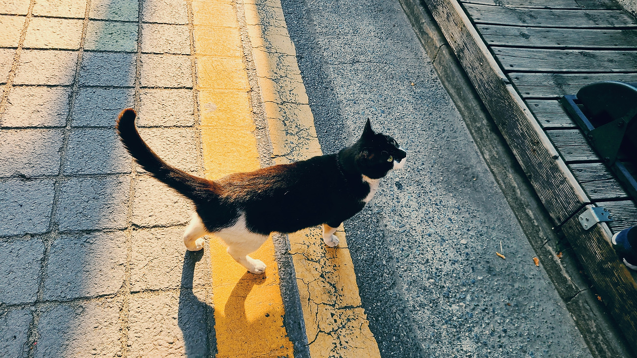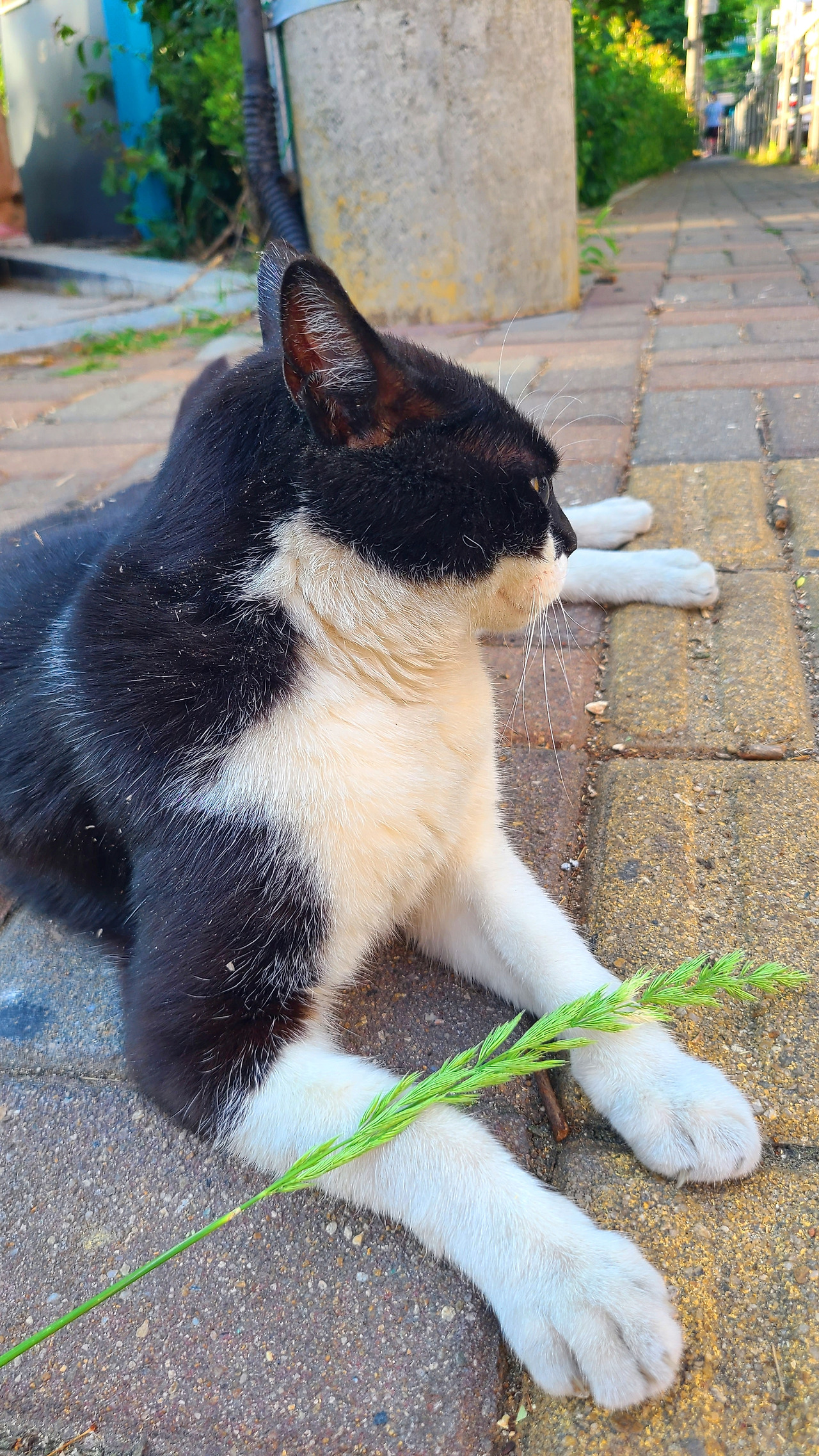 사랑스럽고 간절한 눈으로 고양이를 바라보는 아이들을 뒤로하고 제 갈길을 간다.