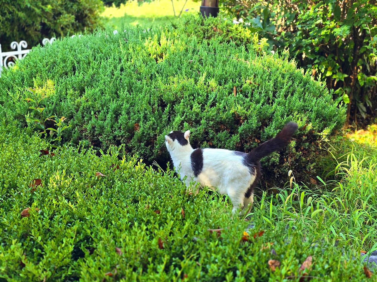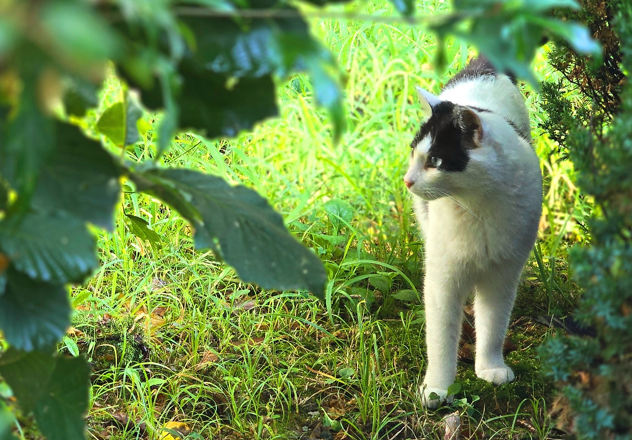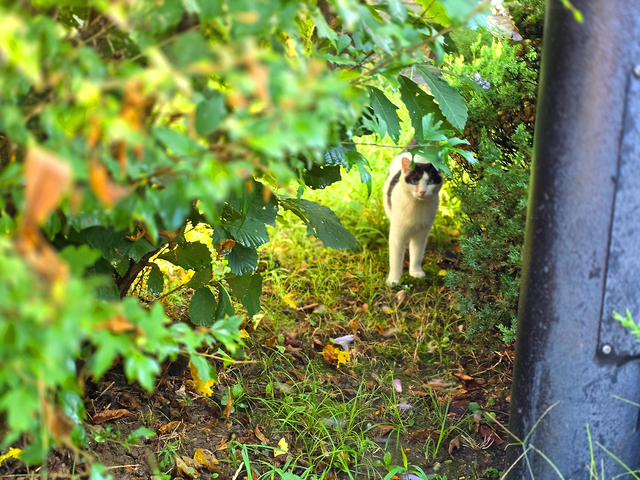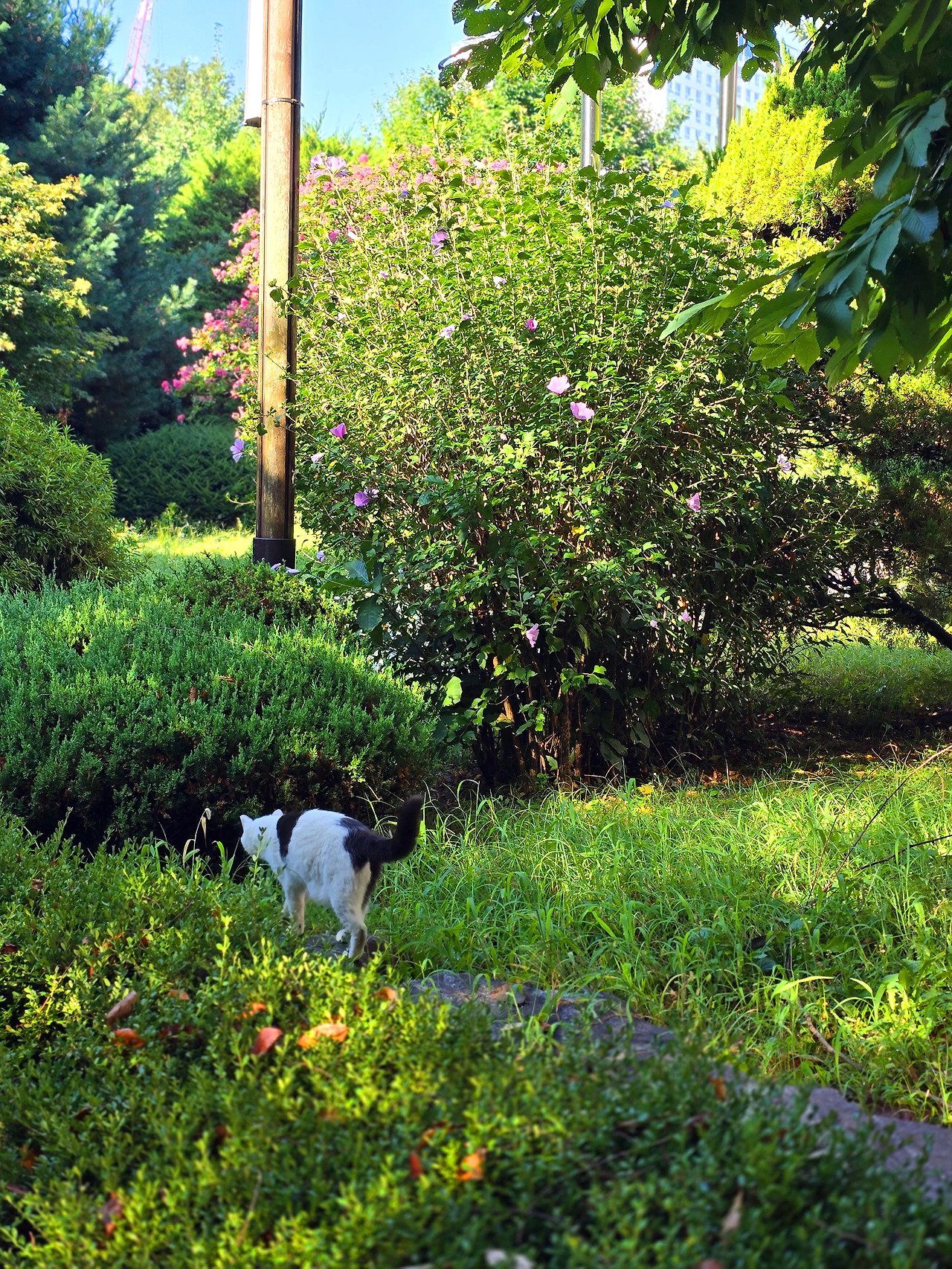 도서관 풀밭에서 고양이를 보았다