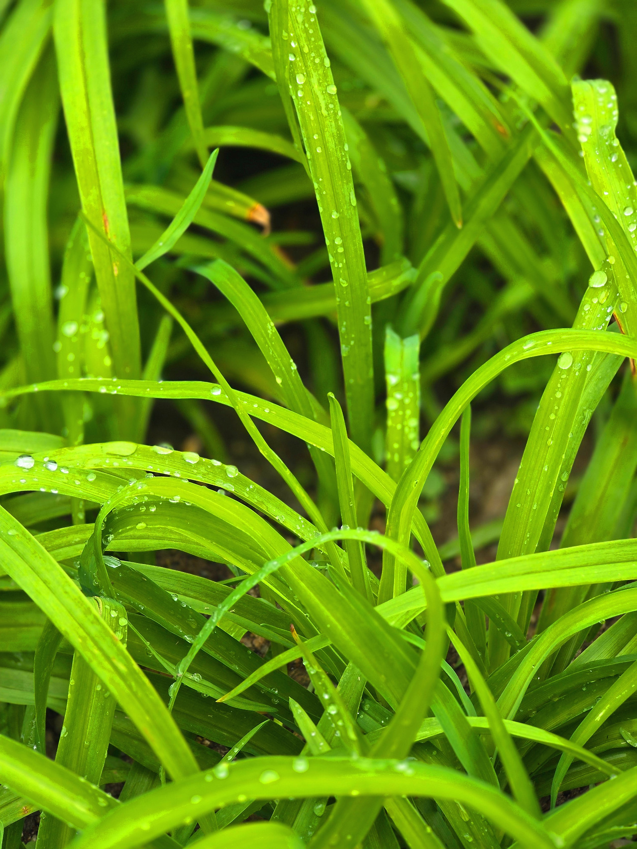 초록의 풀들이 빗방울을 안고 있다