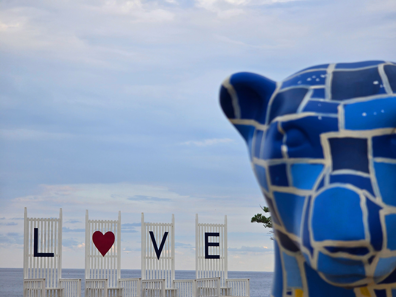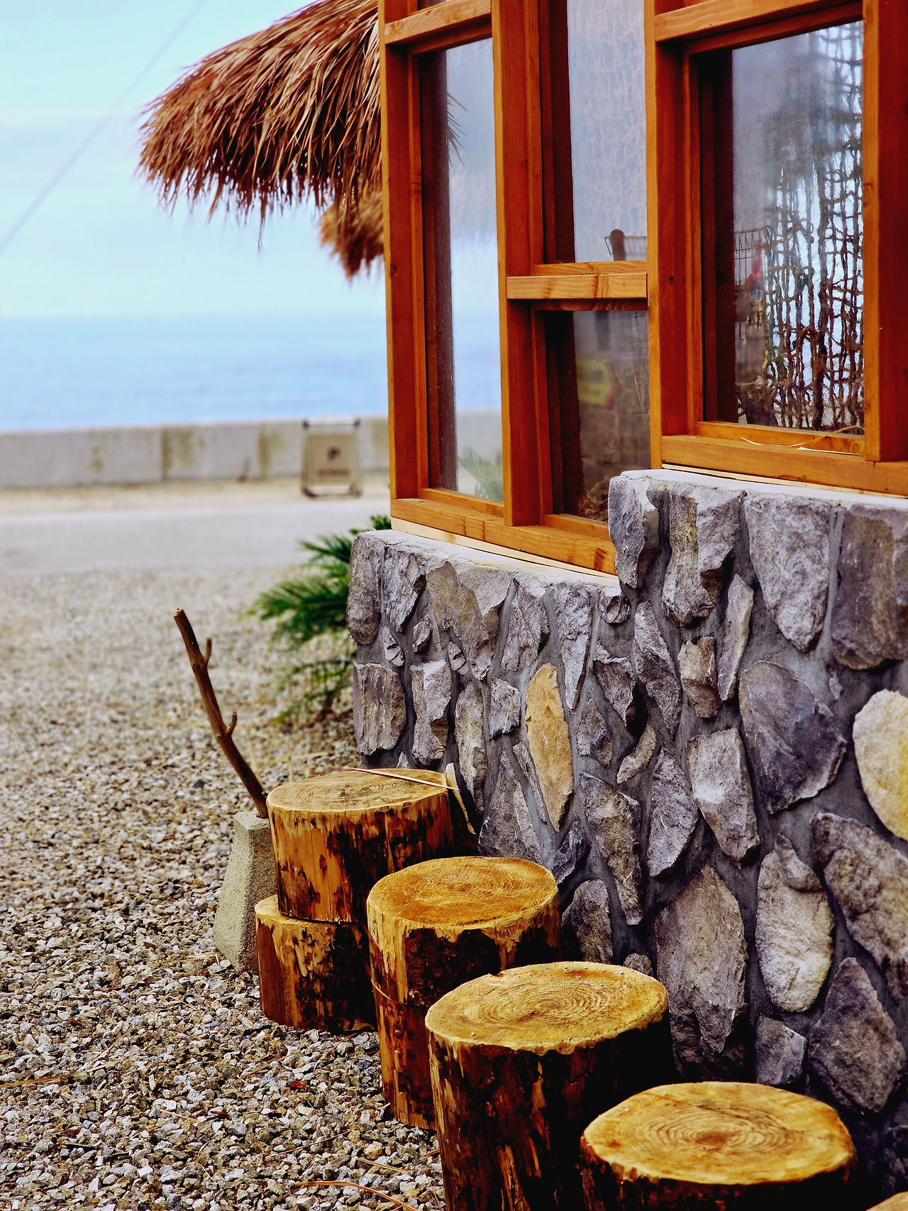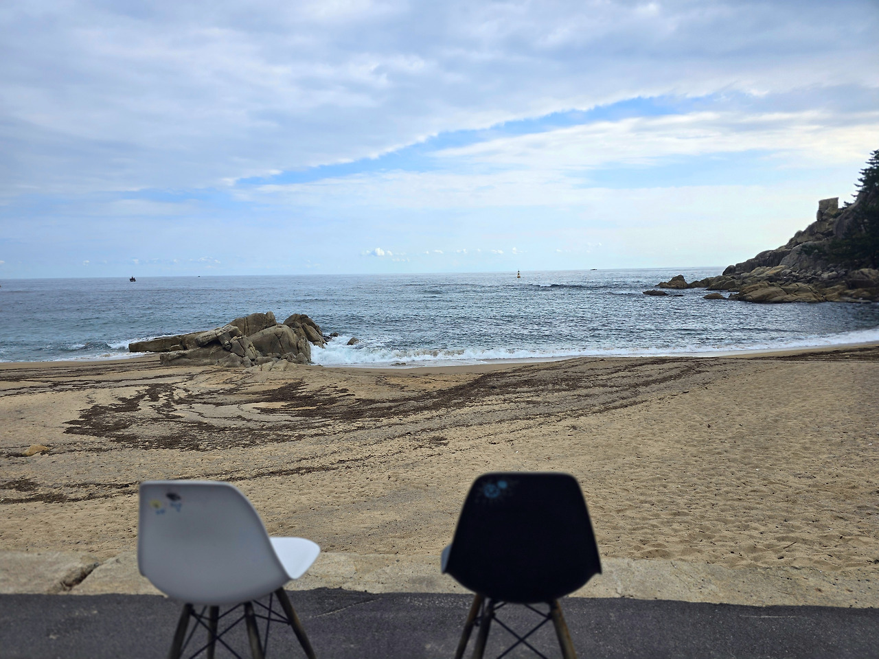 가진해수욕장 입구에 의자 두 개가 있다