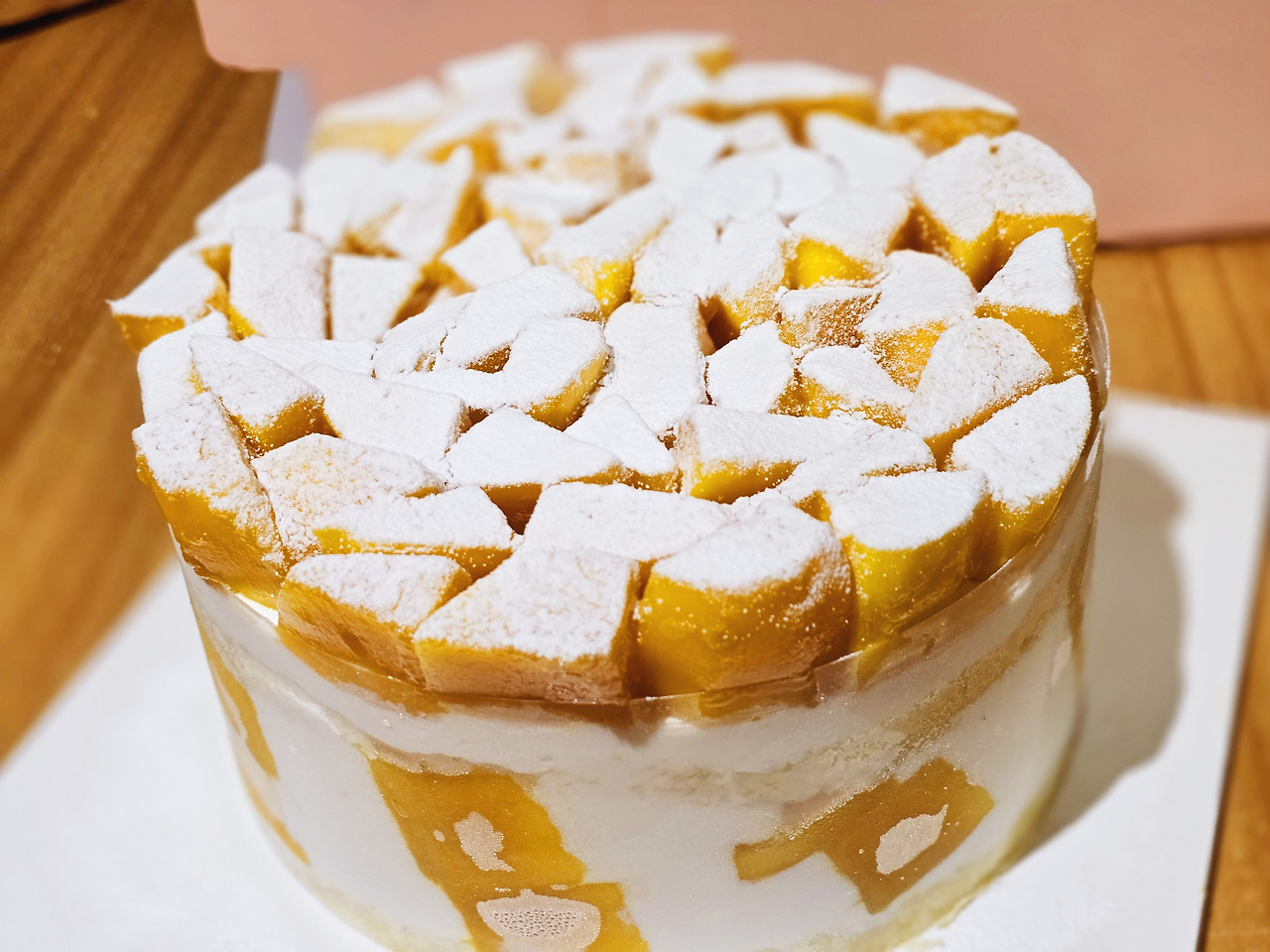 망고가 어마어마하게 잔뜩 들어간 케이크다