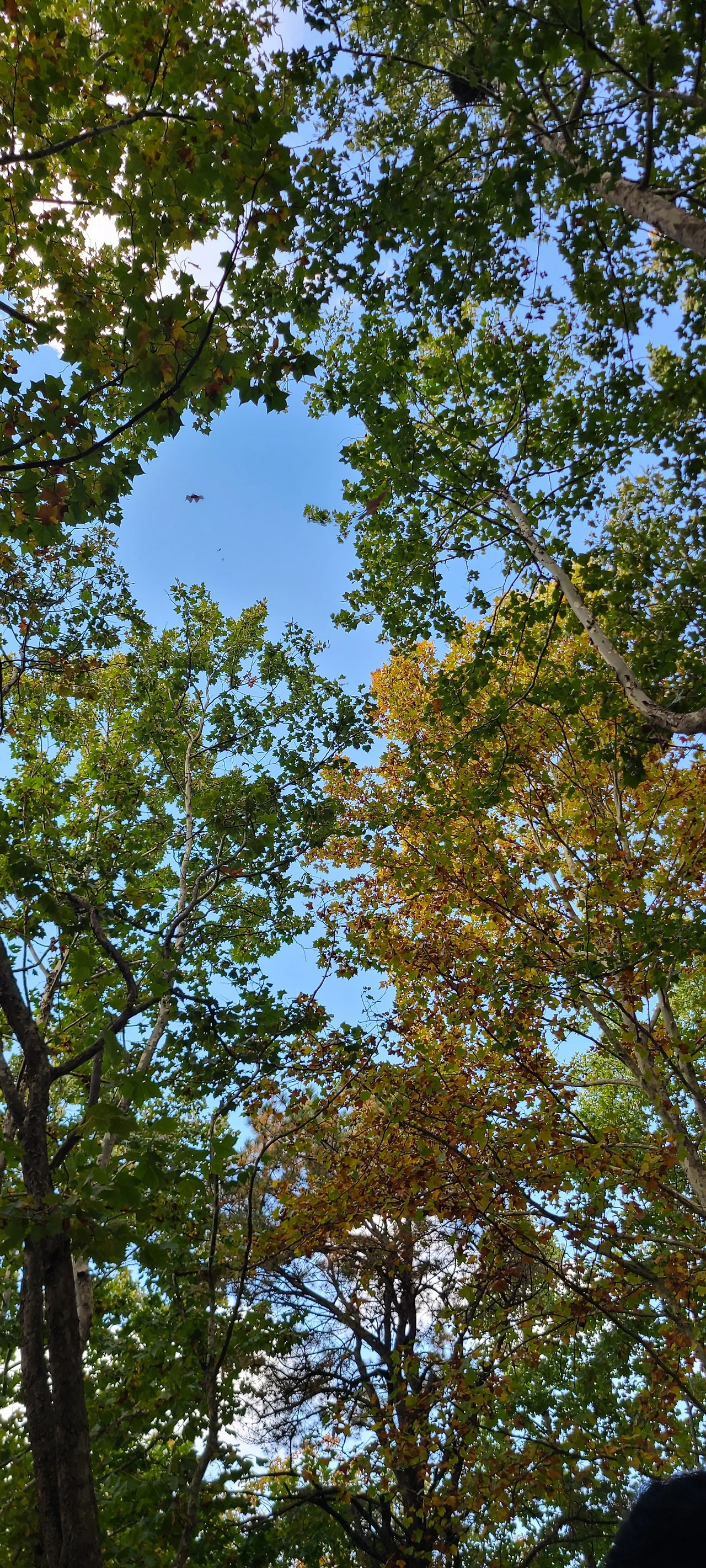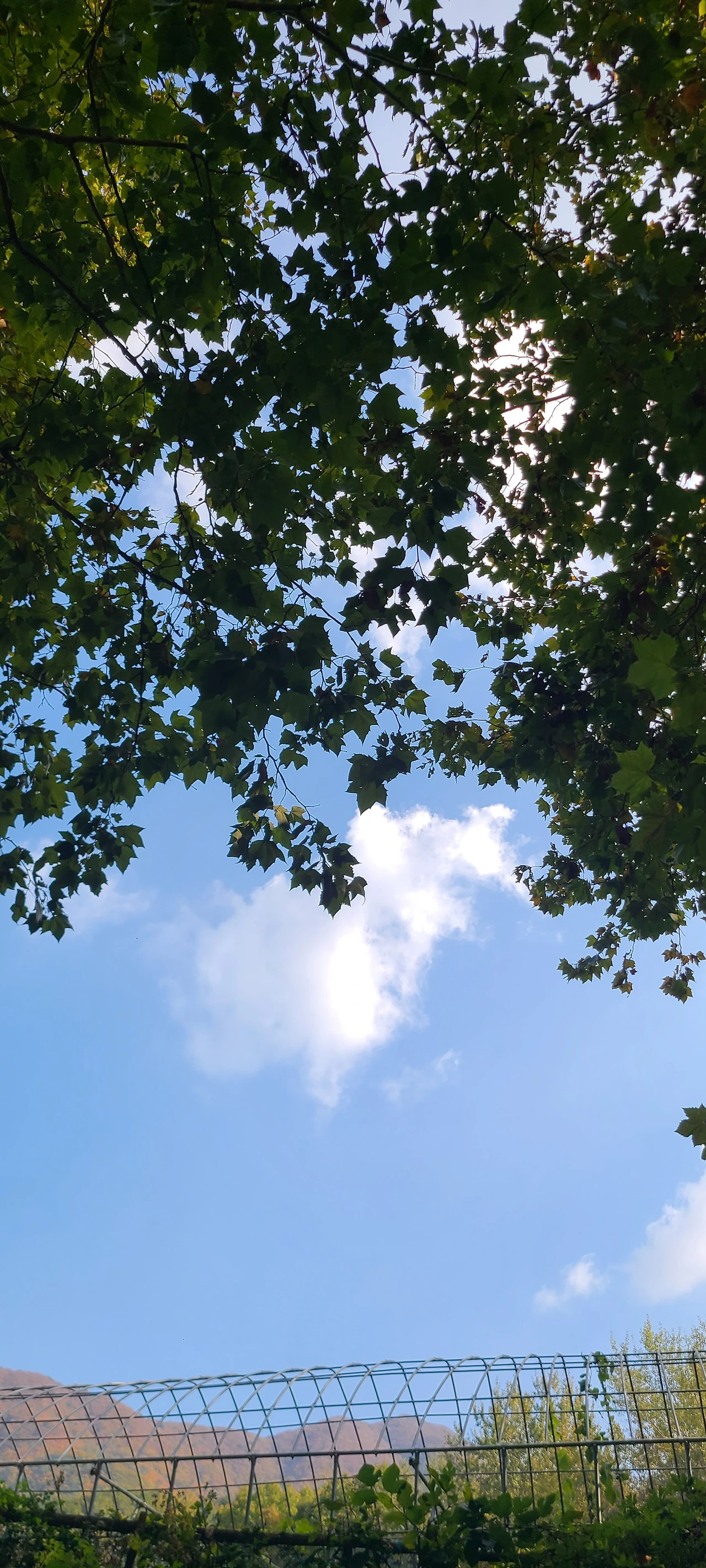 우리의 야외 식탁 위로 나뭇잎이 떨어졌다. 나뭇잎이 흔들리는 소리가 들렸다.