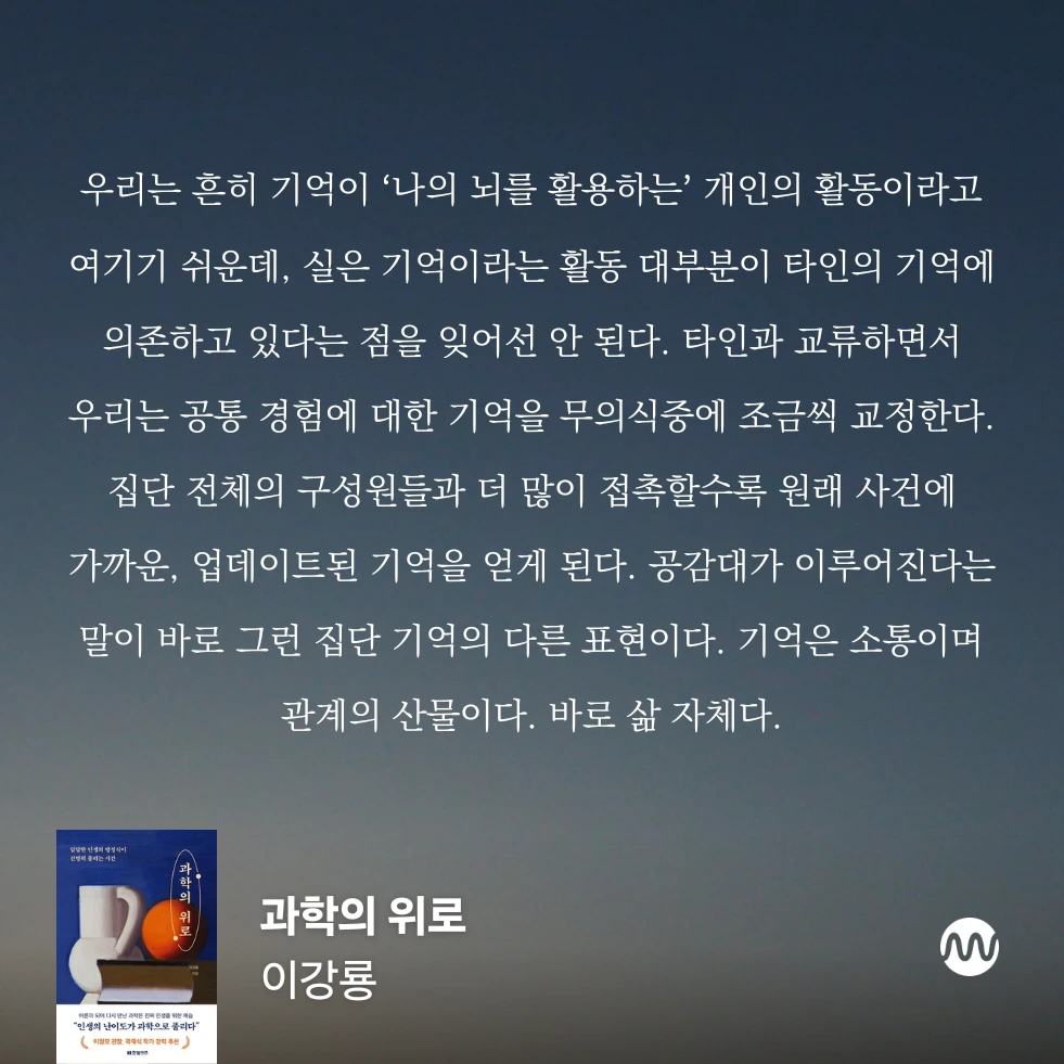 '업데이트된 기억을 얻고 소통하며 관계의 산물, 삶 그 자체'를 배웠다.