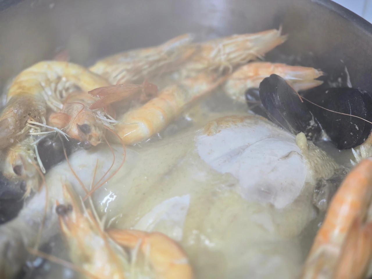 홍합과 새우를 넣고 백숙을 끓여 저녁을 먹었다