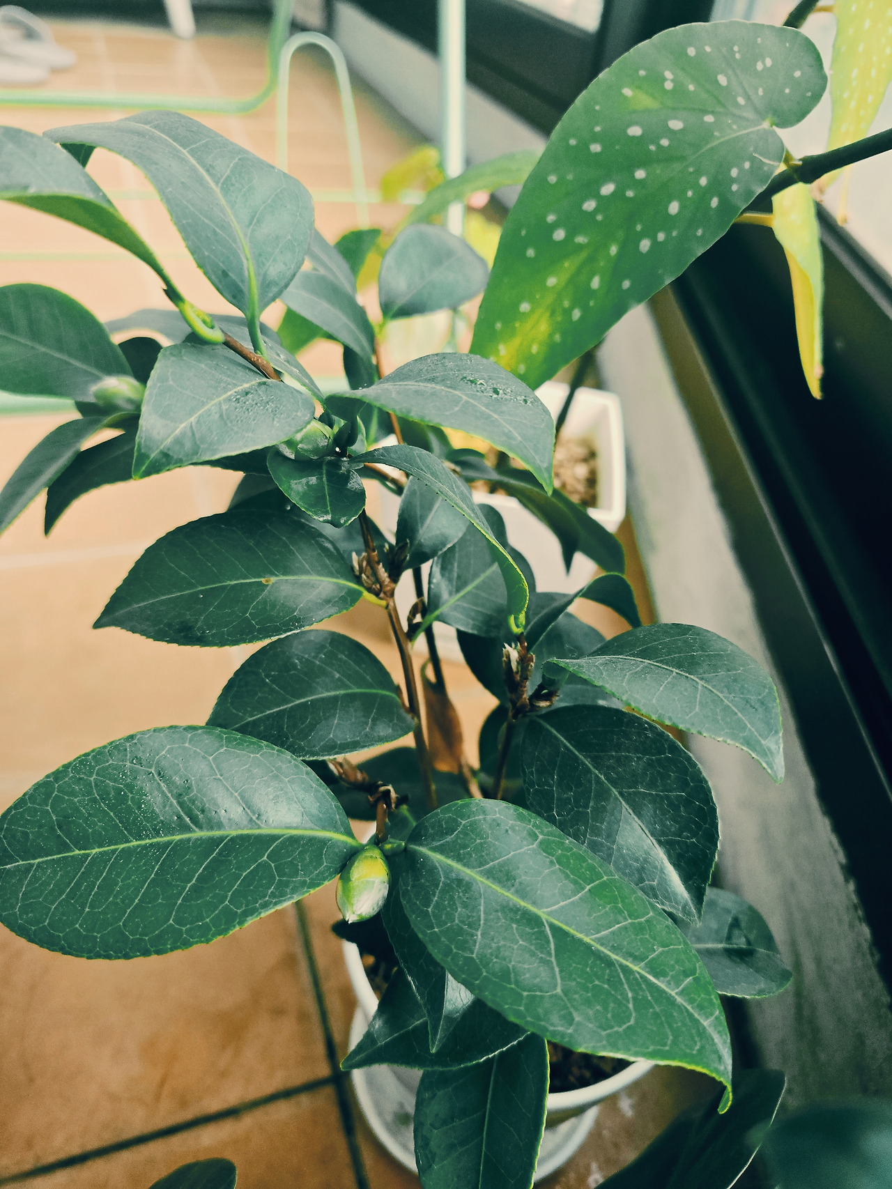 결혼기념일 기념으로 이년 전에 샀던 동백은 아직 잘 자라고 있다