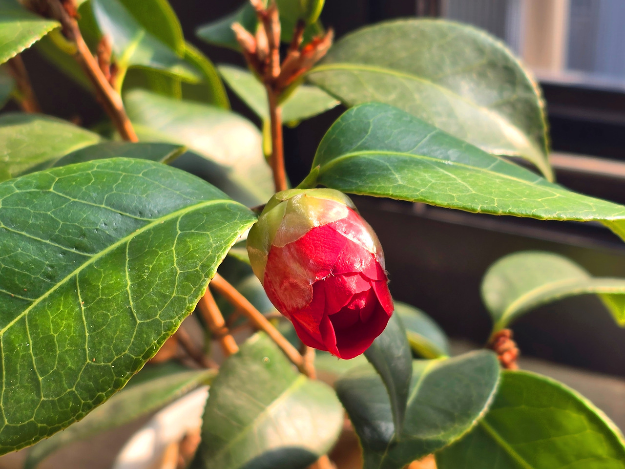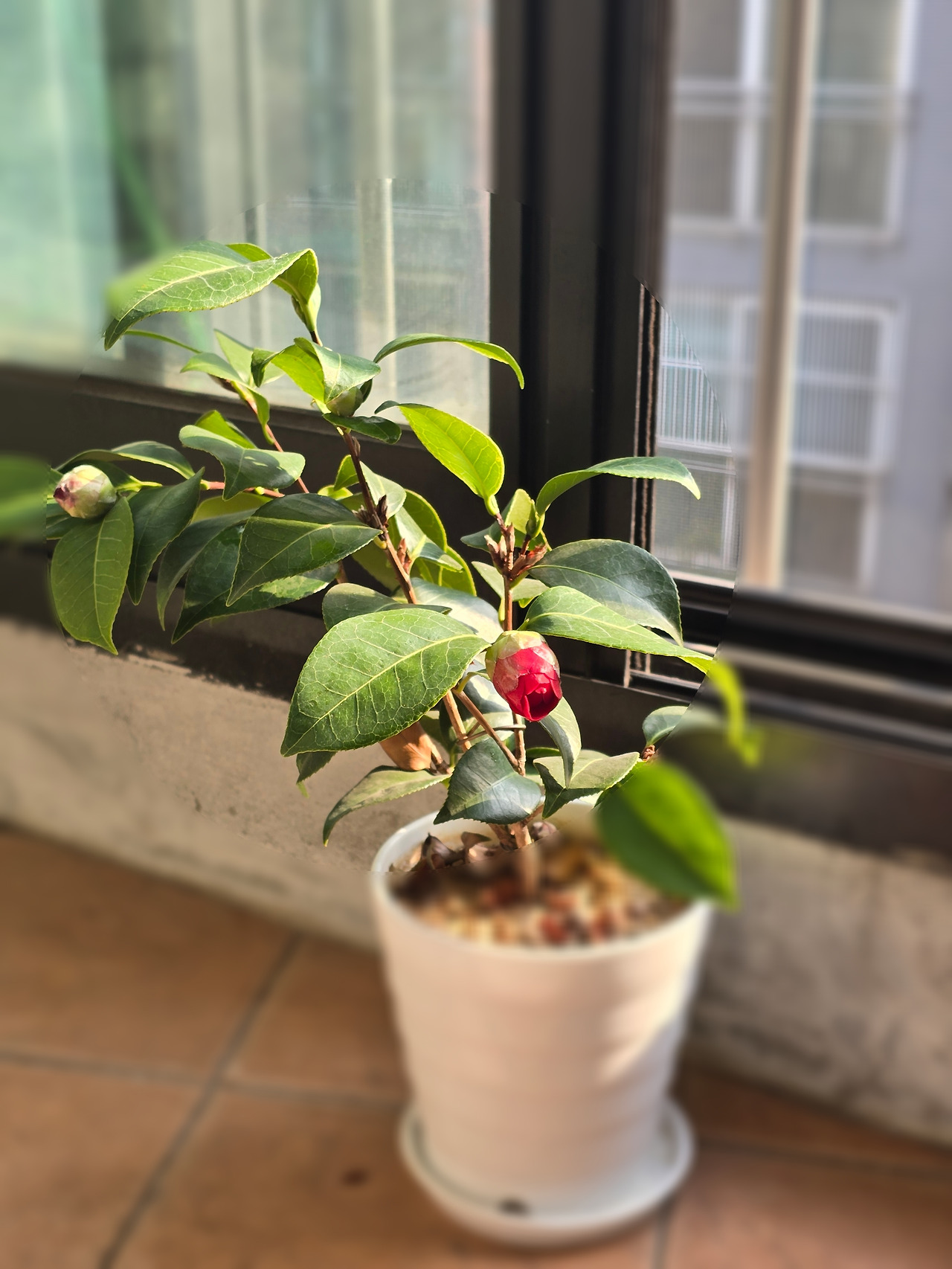 우리 집 동백이가 드디어 꽃을 피웠다.