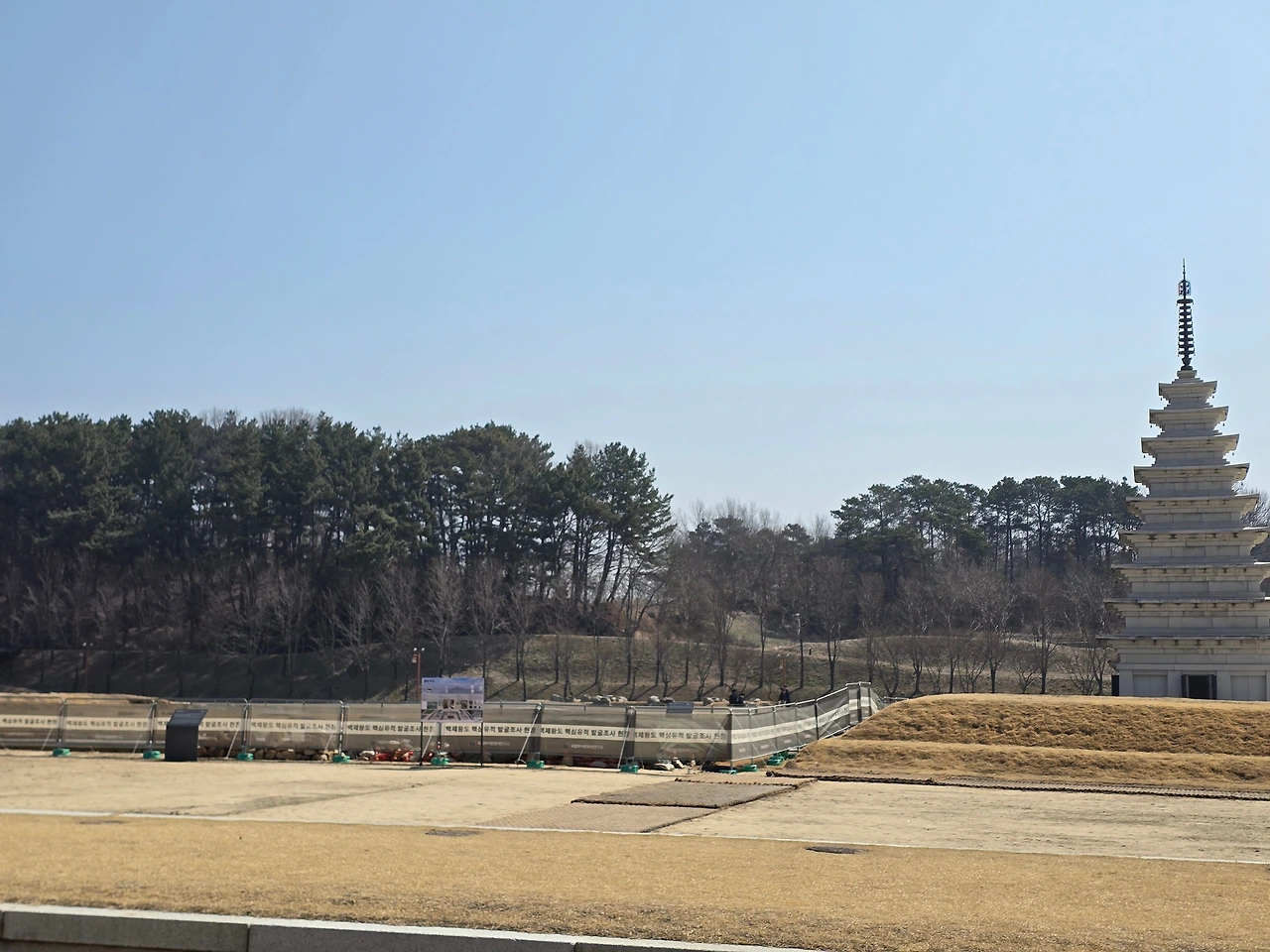 미륵사지 석탑 주변은 여전히 발굴 중이다.