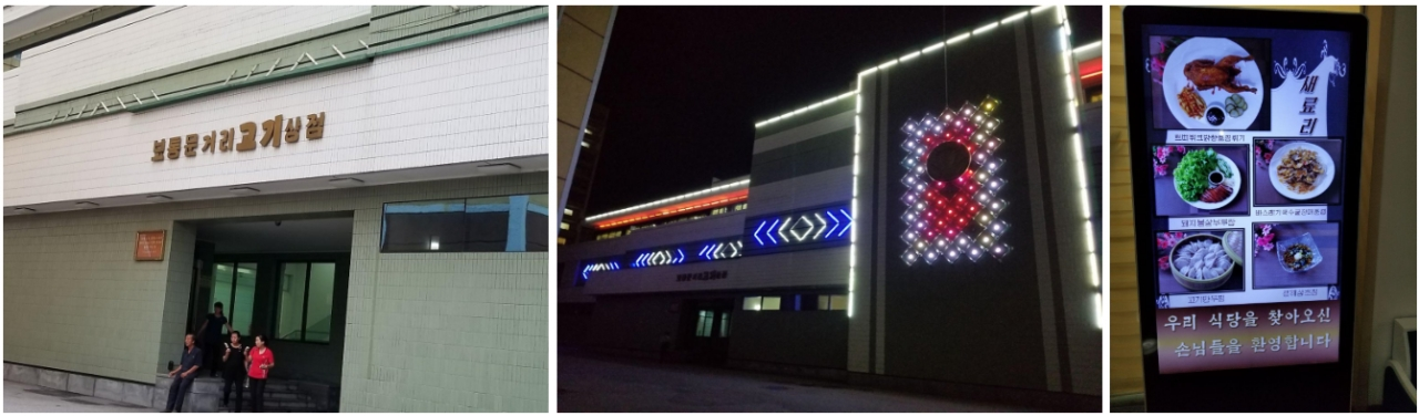 첫날 평양에 내리자마자 모든 것이 다 신기한 경험이다. 신비의 세계에 왔다. 현대적인 평양 시가의 모습. 그 속에서 일상을 사는 평양시민들. 보통문거리 고기 상점 식당에서 또 다른 생동하는 북의 삶을 보고 있다. 가족끼리, 직장동료끼리, 친구끼리 온 다양한 그룹의 사람들이 먹고 마시며 즐겁게 얘기한다. 술잔을 부딪치고 건배를 한다. 여기저기 웃음소리도 들린다. 왁자지껄 여기저기 사람들의 대화가 들린다. 사람들이 뿜어내는 즐거움과 흥이 식당을 가득 메운다. 그 흥에 나도 덩달아 신이 난다.
