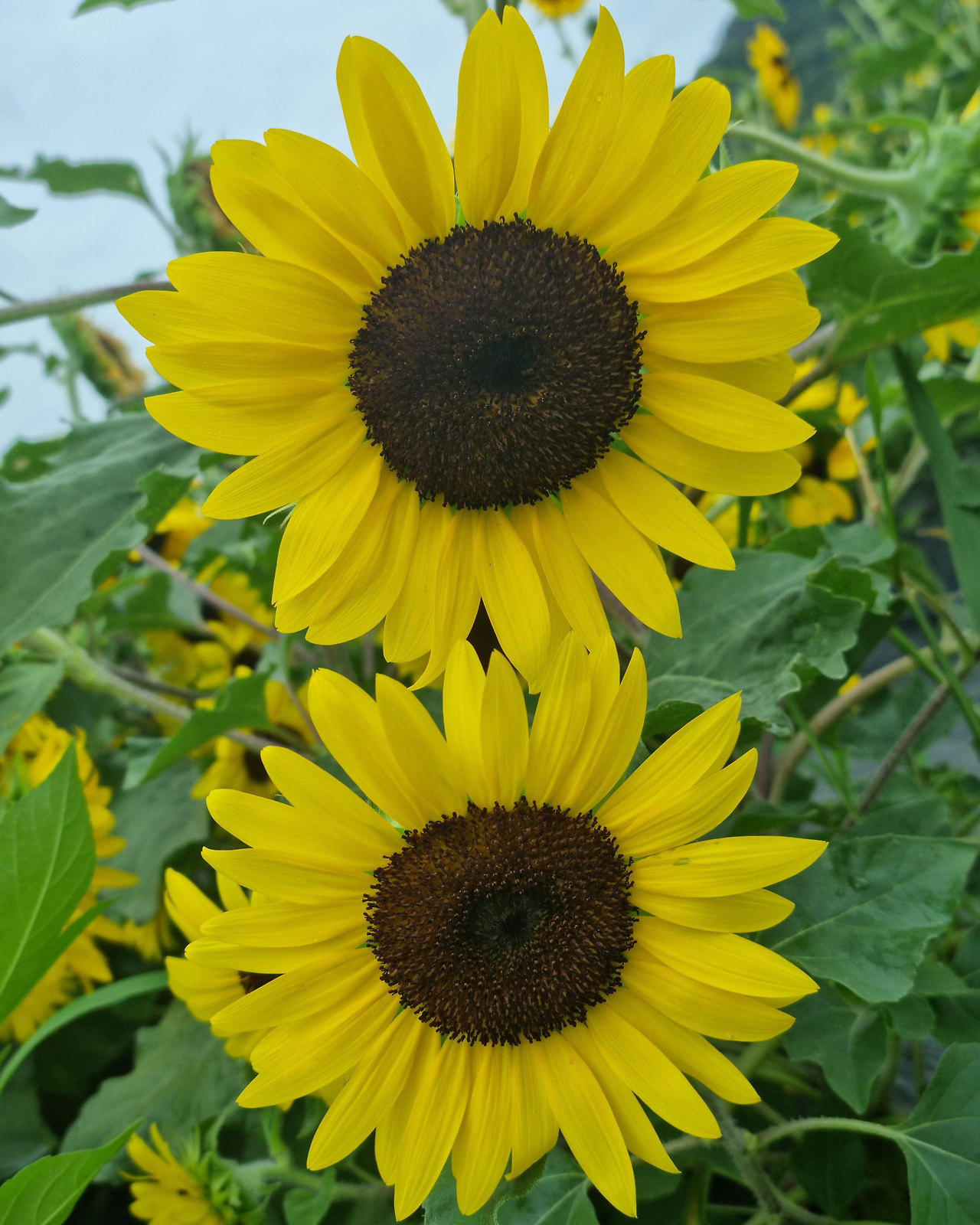 구름에 해가 가려져서 해바라기들은 대부분 고개를 숙이고 있었다. 해바라기를 보며 나는 무엇을 바라기 하고 있는지 갑자기 궁금해졌다. 무엇을 바라고 흘러가고 있는지 나에게 질문을 던져 본다. 해가 뜨고 해가 지는 하루를 정해진 루틴으로 살아가는 삶, 그다음 이야기는 미지수다. 그럼에도 오늘을 충실히 살아야 하는 이유는 미지수의 가짓수를 늘이기 위해서다. 다양한 길로 선택할 수 있는 기회를 얻기 위해서이기도 하다. 해바라기를 보며 나를 다시 챙겨보는 시간이 되었다.