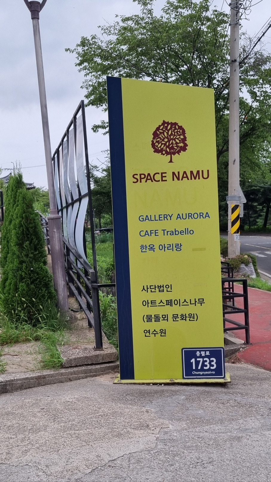 스페이스 나무는 갤러리로 전국적으로 유명한 곳이다. 평일은 이곳에 사람이 적어서 혼자 나를 다독거리기에 좋은 곳이다. 집에서 걸어 15분 거리에 위치한 카페다. 걸어오느라 뜨거워진 몸을 식히기 위해 에어컨 바람이 바로 쏟아지는 곳에 자리를 잡고 앉았다. 갤러리를 둘러볼 수 있는 쿠폰을 구매하니 커피를 한잔 무료로 마실 수 있어서 추가로 얼그레이 롤케이 크도 주문을 했다. 케이크가 달지 않아서 마음에 든다.