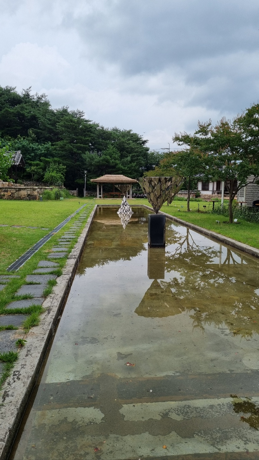 피터 문의 작품들이 전시되어 있었다. '물, 형상의 회복'이라는 주제로 그려진 그림은 가격이 제법 비쌌다. 물의 흐름이 그려낸 작품들을 구경하고 나서 스페이스 나무 정원도 둘러본다. 곳곳에 조각상이 세워져 있고 걸어 올라가는 곳마다 다양한 꽃들이 심겨 있다. 경사진 곳에는 완만하게 걸을 수 있도록 길을 만들어 놓았다. 한 편에는 새로운 무언가를 만드는지 한창 공사가 진행되고 있다.