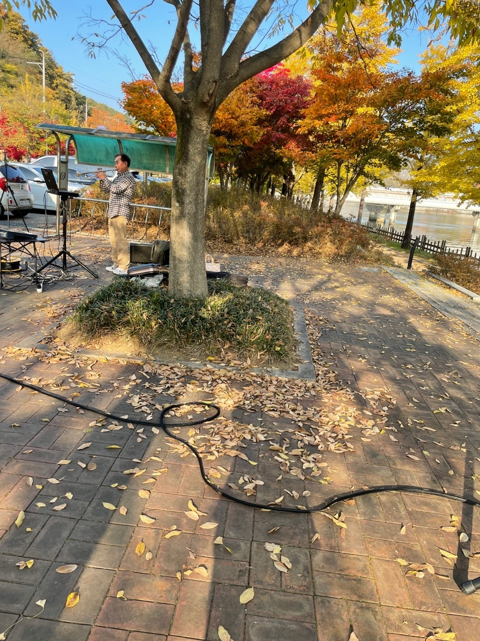 올해 10월의 마지막 날은 이렇게 오래 걷는다. 살살 부는 바람에 손에 잡힐 듯 천천히 떨어지는 낙엽이 은행잎보다는 수북이 쌓여있고, 이용 가수의 잊혀진 계절을 트럼펫으로 들려주는 중년의 아저씨 덕분에 벤치에 앉아서 대가 없이 라이브 음악을 듣는다. 강물에 비친 강한 햇살을 마음에 담고 싶어 어쩔 줄 모르는 찌릿한 행복감도 맛본다.
