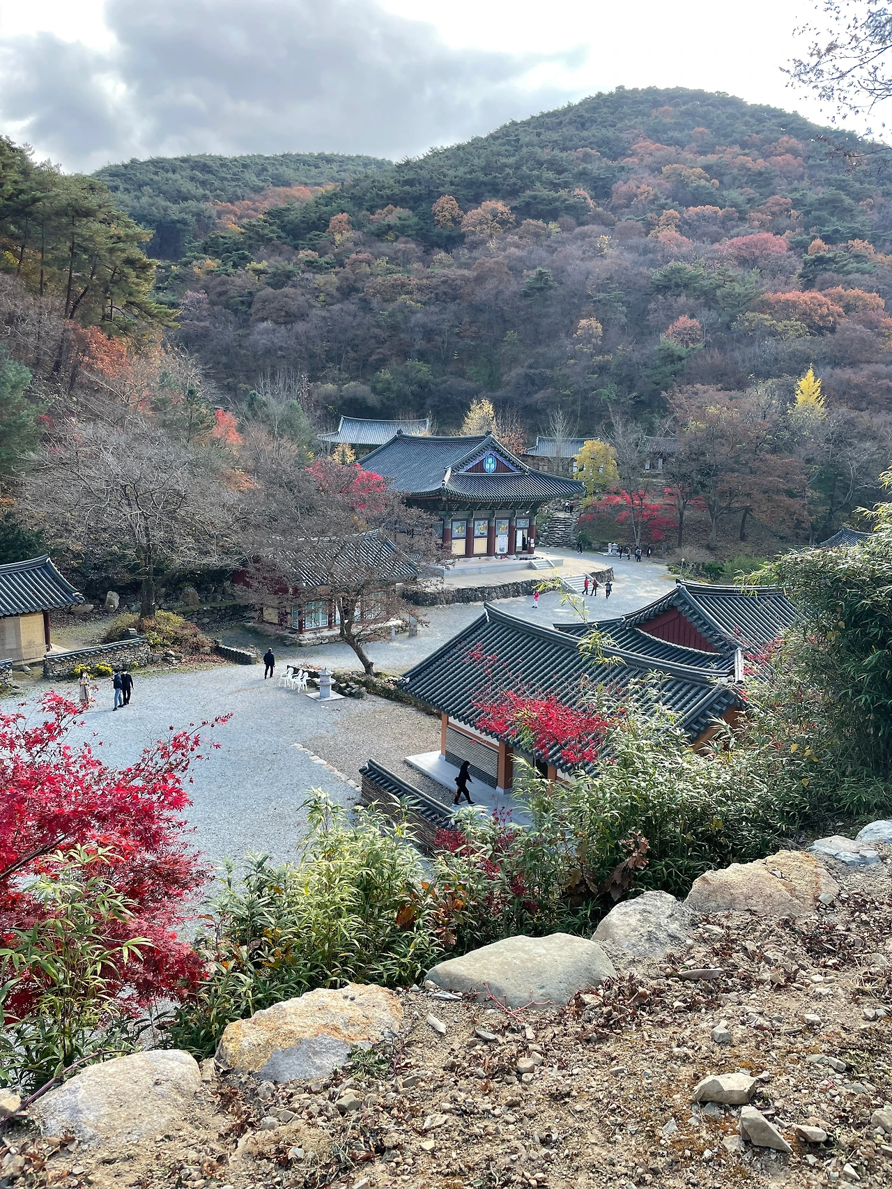 불상 앞에 어설프게 머리 숙여 감사한 마음을 전한다. 절절한 마음으로 살아온 시간들이 이제는 조금 편해졌으니 그저 감사할 따름이다. 걷다가 다른 이들을 마주치면 "안녕하세요"라고 인사를 건네고, 계단 옆에 숨어있는 큰 빗자루로 쌓여있는 낙엽을 "쓱쓱"쓸어본다. 계단 위로 오르던 중년 남성이 너무 깨끗이 쓸어버리면 가을 멋이 없다며 말을 건넨다. 그렇기도 하겠다 싶어서 조금은 남겨두고 걷지 않은 쪽으로 낙엽을 몰아넣었다.