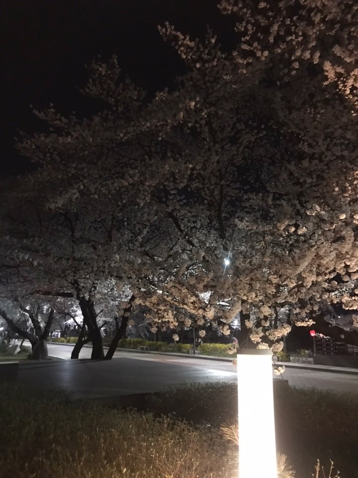 오늘은 꽃을 구경하러 나온 사람이 몇 명 보인다. 젊은 친구 4~5명이 돗자리를 펴놓고 맥주인지 음료수인지 웃음소리 함께 가로등 불이 비춰주는 벚꽃 밑에 앉아있다. 그들을 피해서 사진 한 장 찍고 강이 흐르는 내길로 걷는다.