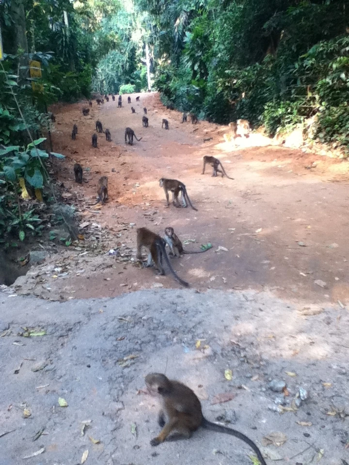세 번째 단골손님은 일주일에 2~3번은 방문하는 원숭이들이다. 마을 사람들이 뒷산을 정글이라 불렀는데, 이 정글에 사는 원숭이들이 식량이 떨어지면 수금하러 동네를 스-윽 돈다. 날씨가 더우니 어느 집이나 창문을 열어놓기 때문에 원숭이들에게는 마을 모든 집이 프리패스다. 바나나만 가져간다 생각하면 큰 오산이다. 먹을 수 있는 음식은 죄다 가져간다고 보면 된다. 뿐만 아니라 신기한 물건이 있으면 그것도 가져간다. 한 번은 살충제를 가져가서 지붕 위에서 이리저리 살펴보다 제 얼굴에 살충제를 뿌리고 기겁을 하고 도망간 원숭이도 있었다.