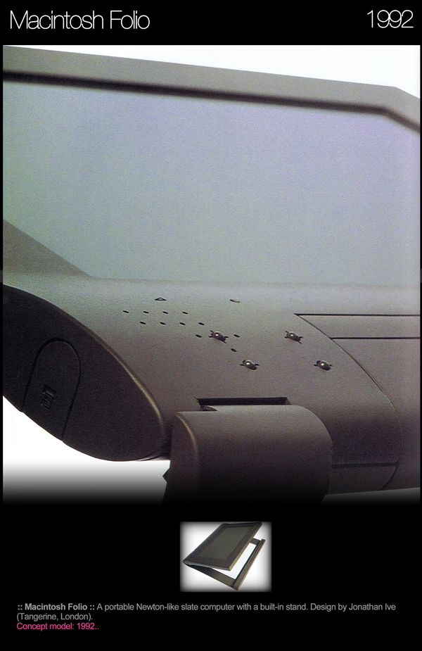걸쇠처럼 보이는 스케치도 있었고, 길고 얇은 서체로 “가식(pretension)”과 “스마트”를 적은 페이지도 있었다. 애플 경쟁자들이 좋아할 만한 다른 페이지에서는 아이브가 “Airbug”라는 단어를 썼다.