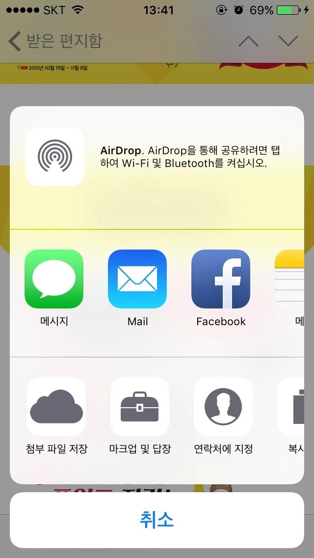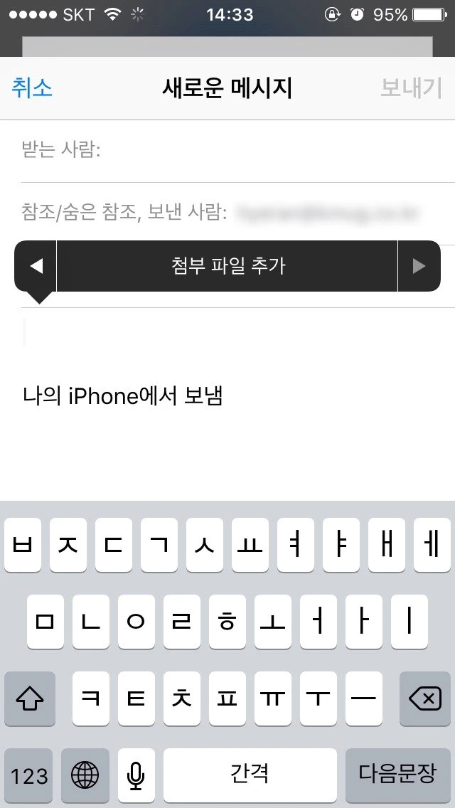 첨부되는 파일은 iCloud Drive상에 있는 링크 첨부가 아니라 실제 파일이 첨부됩니다.
