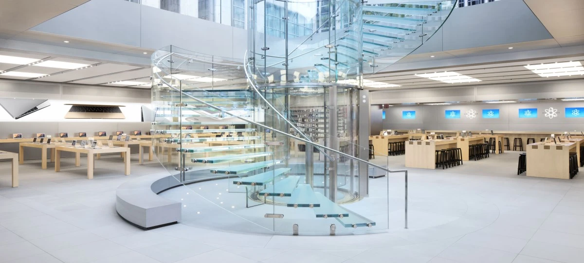 미국 뉴욕의 5번가에 위치한 큐브 모양의 애플스토어와 중국 상해에 있는 실린더형 유리 타워, 프랑스 파리 루브르 지하에 위치한 애플스토어, 등은 애플의 대표적인 소매점으로 독특한 디자인을 하고 있는데 이 건축물은 모두 같은 건축가가 디자인했다.