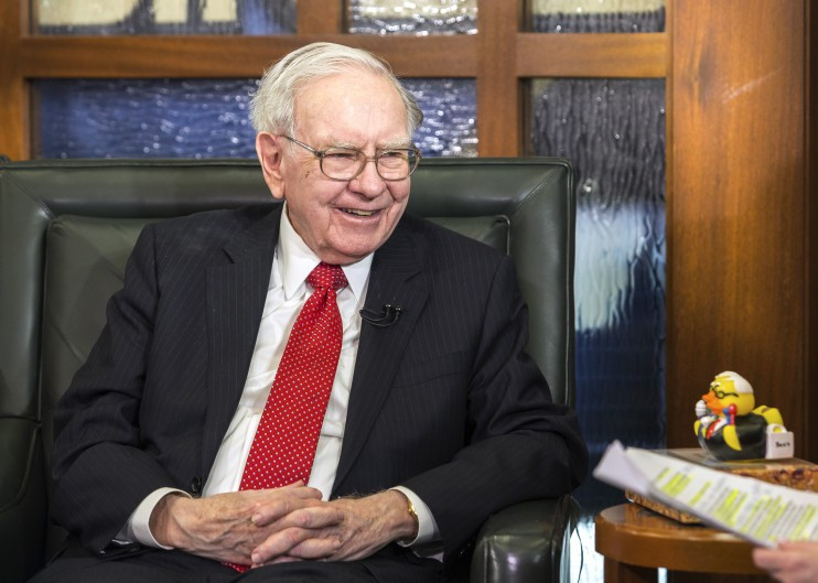 Warren Buffett offered advice on returning money to shareholders when Tim Cook turned to him. (John Peterson/AP)