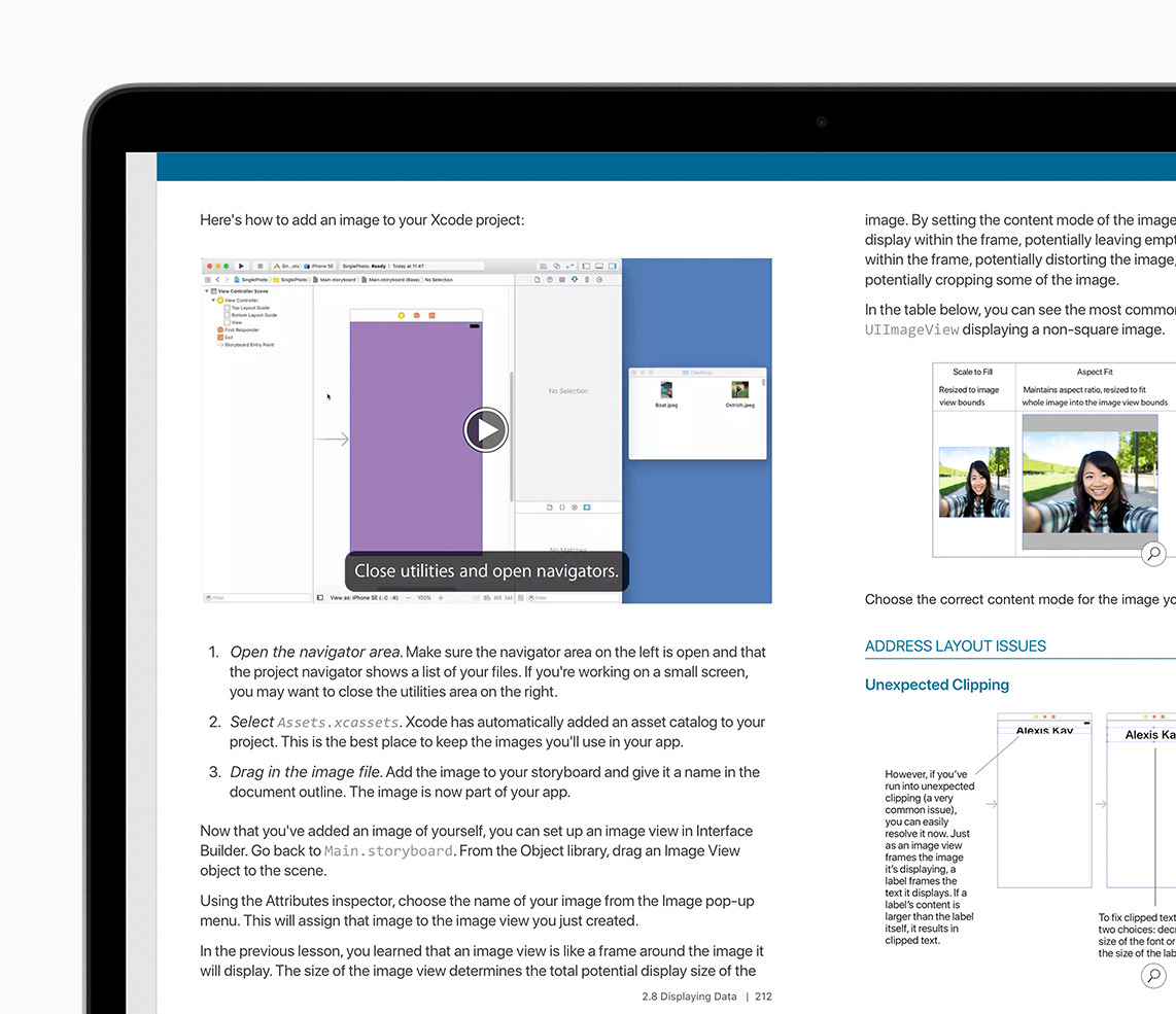 Apple의 엔지니어 및 교육 담당자들이 개발한 1년 과정의 App Development with Swift 프로그램을 통해 학생들은 안전성, 성능 및 최신의 소프트웨어 디자인 패턴에 중점을 둔 오픈 소스 프로그래밍 언어인 Swift를 이용해 앱을 개발할 수 있는 방법을 배우게 된다. 프로그래밍 경험이 전무한 학생도 수강이 가능하며 직접 디자인한 앱을 충분히 작동하도록 개발할 수 있다.